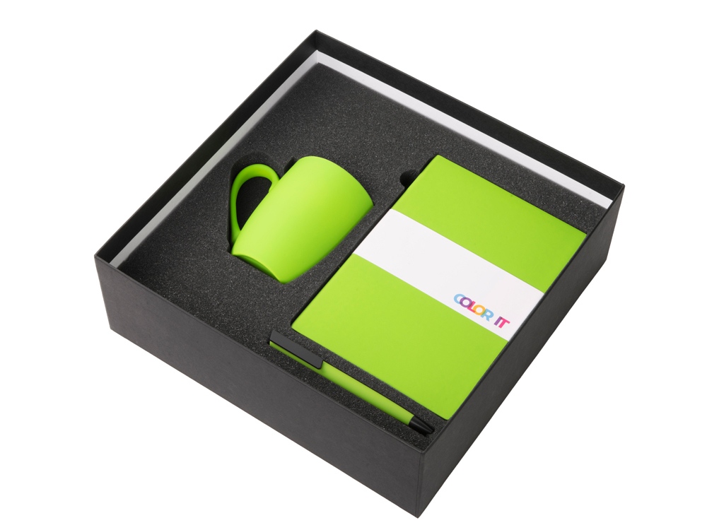 Подарочный набор c блокнотом C2, ручкой и кружкой, зеленое яблоко