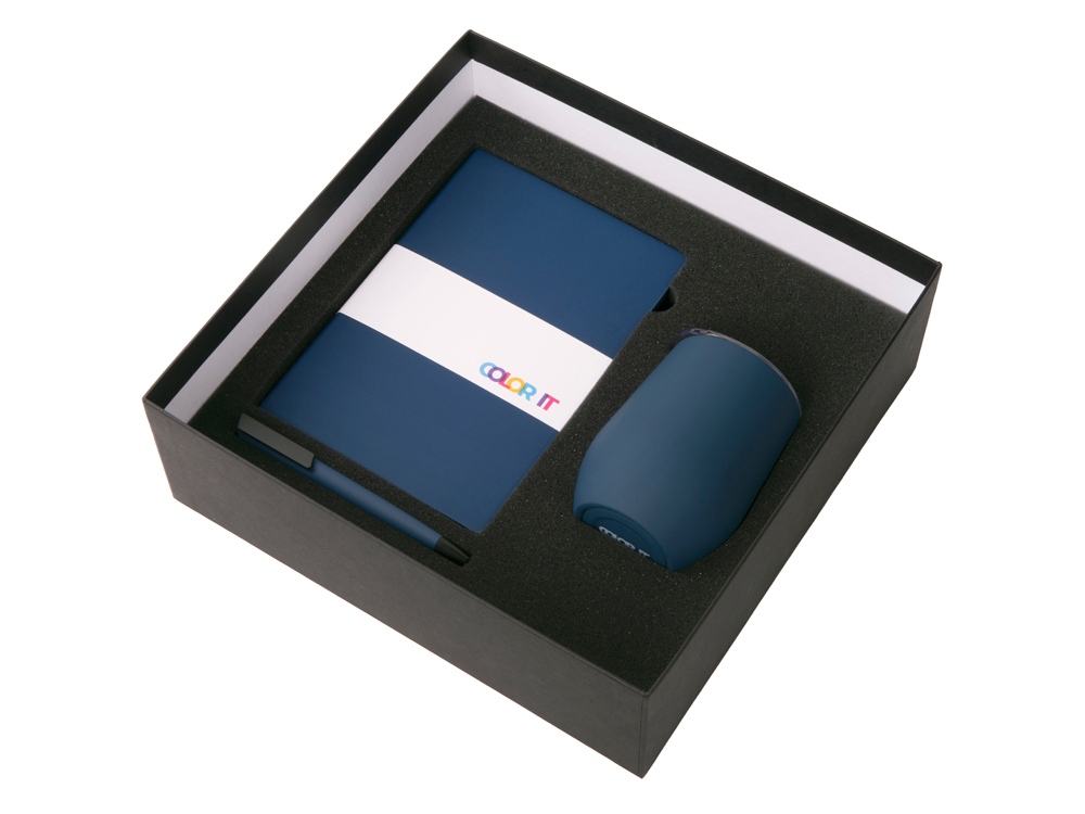 Подарочный набор c блокнотом C1, ручкой и термокружкой, темно-синий