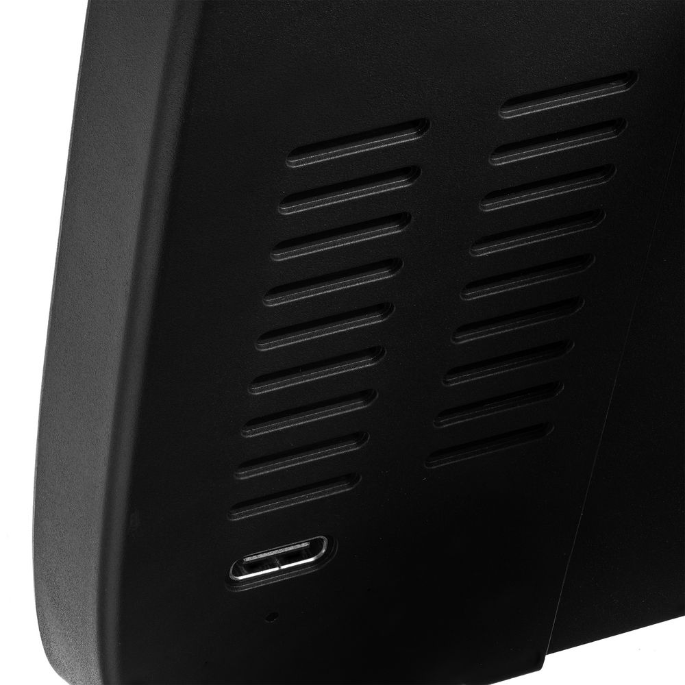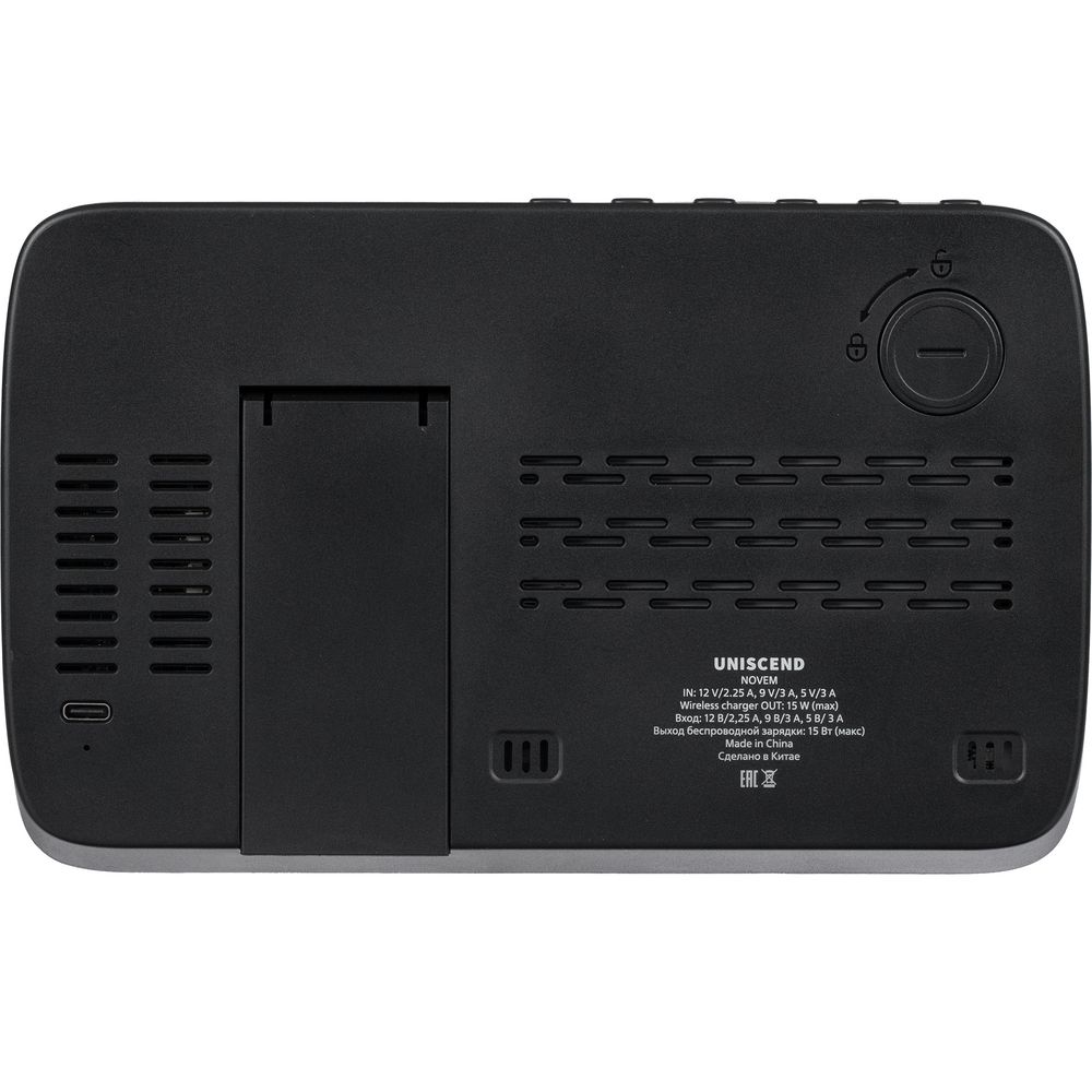 Станция беспроводной зарядки с часами и календарем и подсветкой логотипа Novem, черная