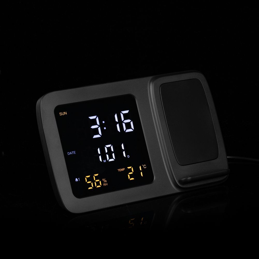 Novem — многофункциональное устройство, которое сочетает в себе функции беспроводной зарядки, настольных часов с будильником, электронного календаря и метеостанции, которая показывает значения температуры и влажности.