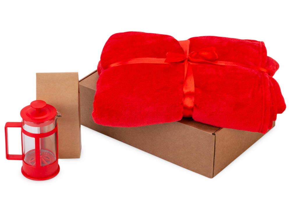 Набор продуман до мелочей. Когда зимним вечером подходит время чая, хочет завернуться в мягкий и теплый плед и наслаждаться любимым напитком, который можно заварить во френч прессе, входящем в комплект. Набор упакован в стильную крафтовую коробку. Трафаретная печать (1 цвет (цветные изделия)) на данный товар осуществляется бесплатно.