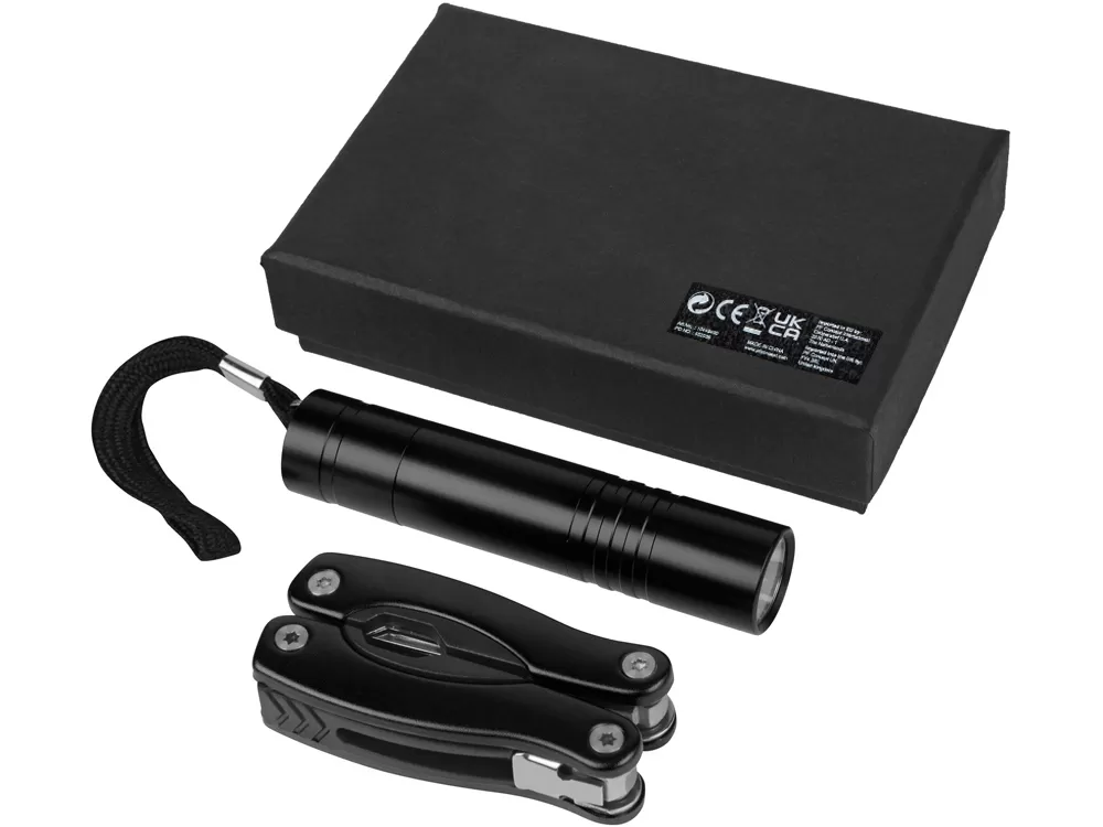 Подарочный набор Scout с многофункциональным ножом и фонариком, черный