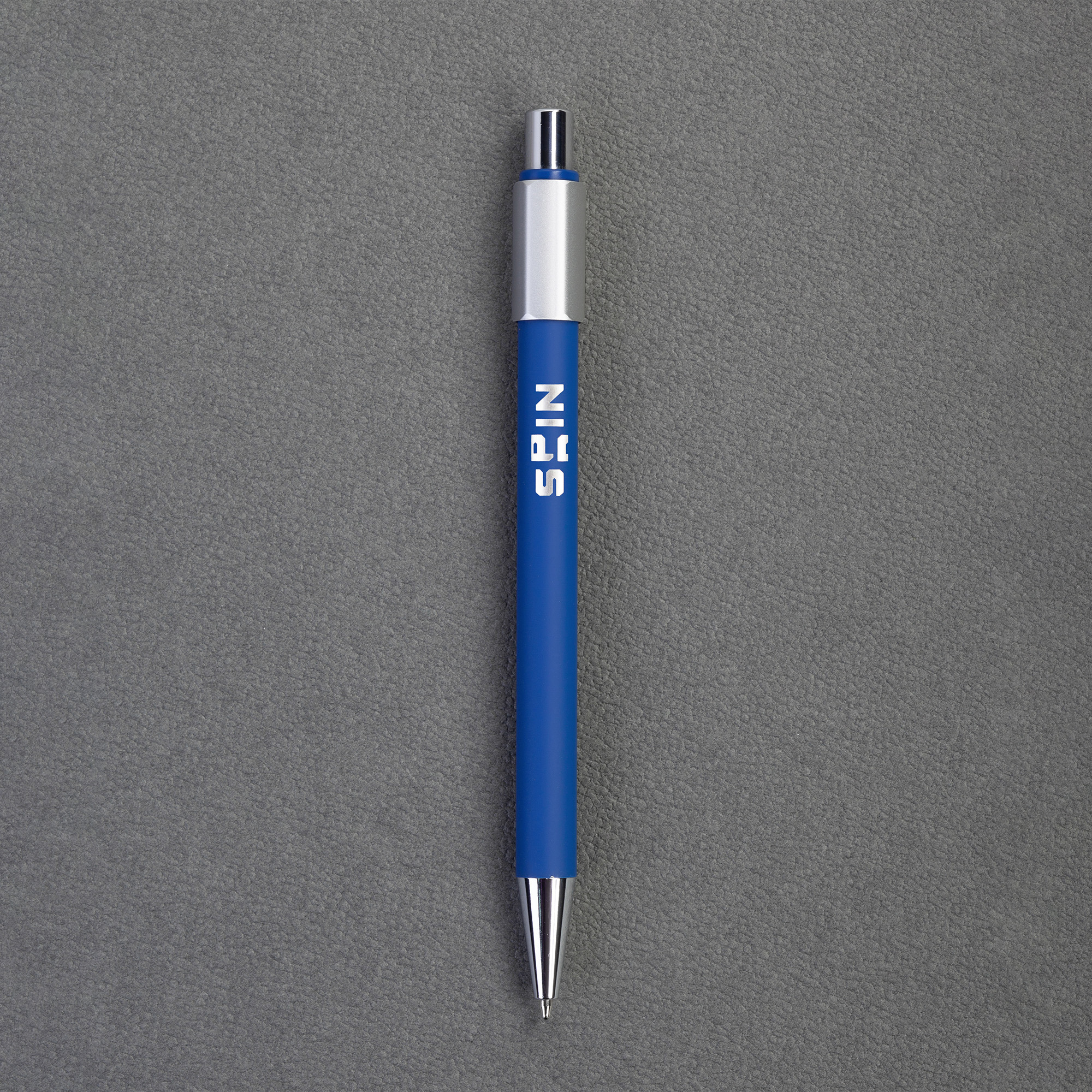 Ручка шариковая Spin с 6ти-гранным спиннером, покрытие soft touch, темно-синий
