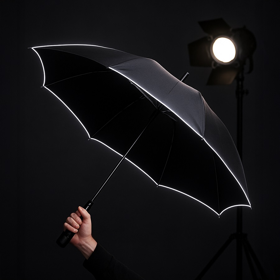 Зонт-трость 'Reflect', полуавтомат, эпонж, чёрный со светоотражающей окантовкой в чехле с ручкой, черный