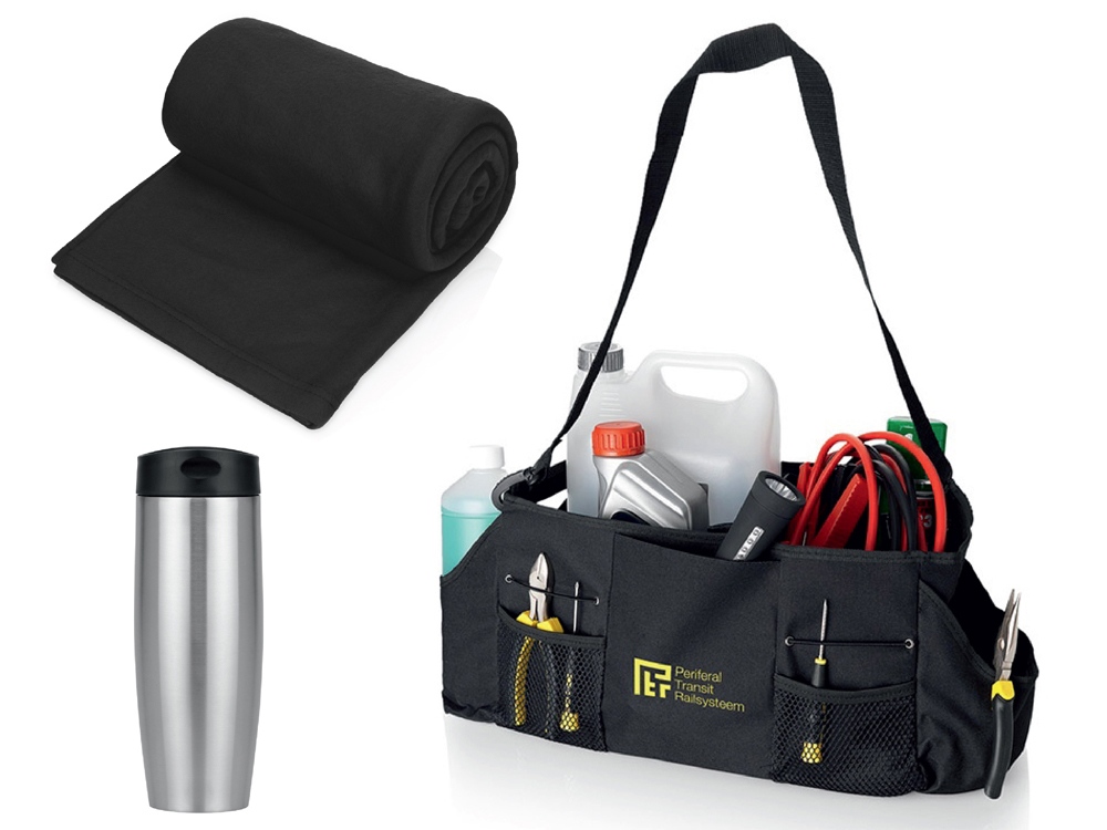 Подарочный набор с пледом, термокружкой и сумкой для инструментов, черный
