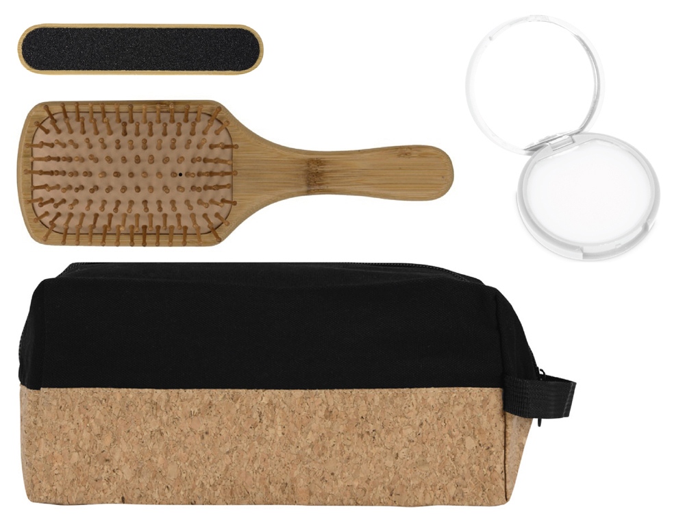 | Материал | расческа, пилка для ногтей - бамбук, бальзам для губ -пластик, несессер - хлопок, пробка, ручка - полиэстер |