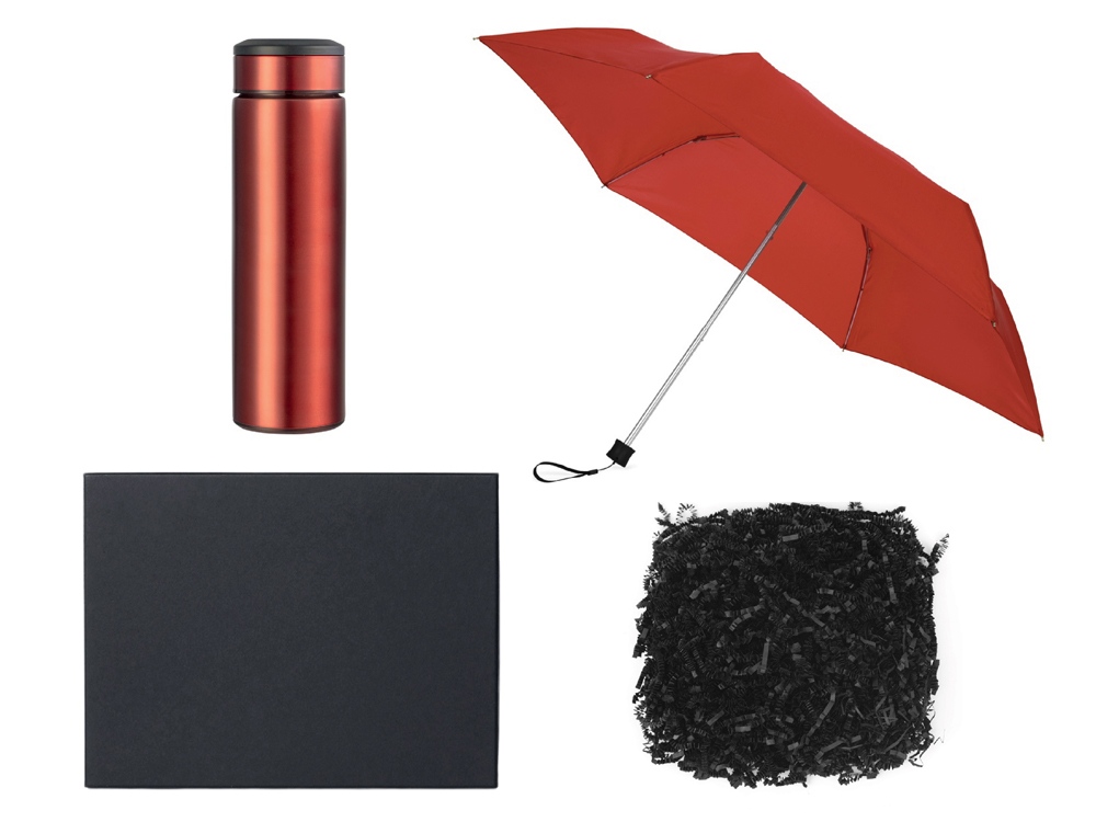 Такой набор подойдет как для городских прогулок, так и для выездов на природу. Термос сохранит ваш напиток горячим, а зонт защитит от дождя.