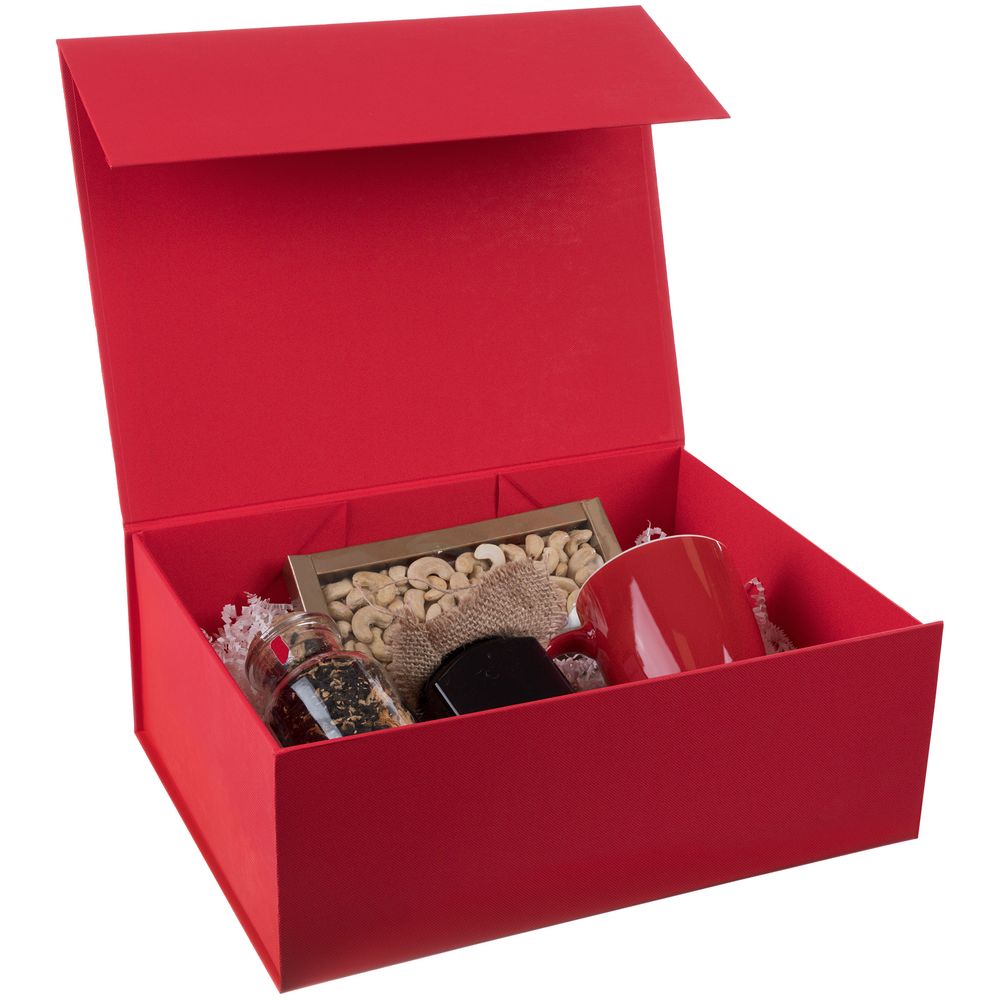 Коробка из переплетного картона, кашированного тисненой тонированной в массе бумагой, с крышкой на магните.