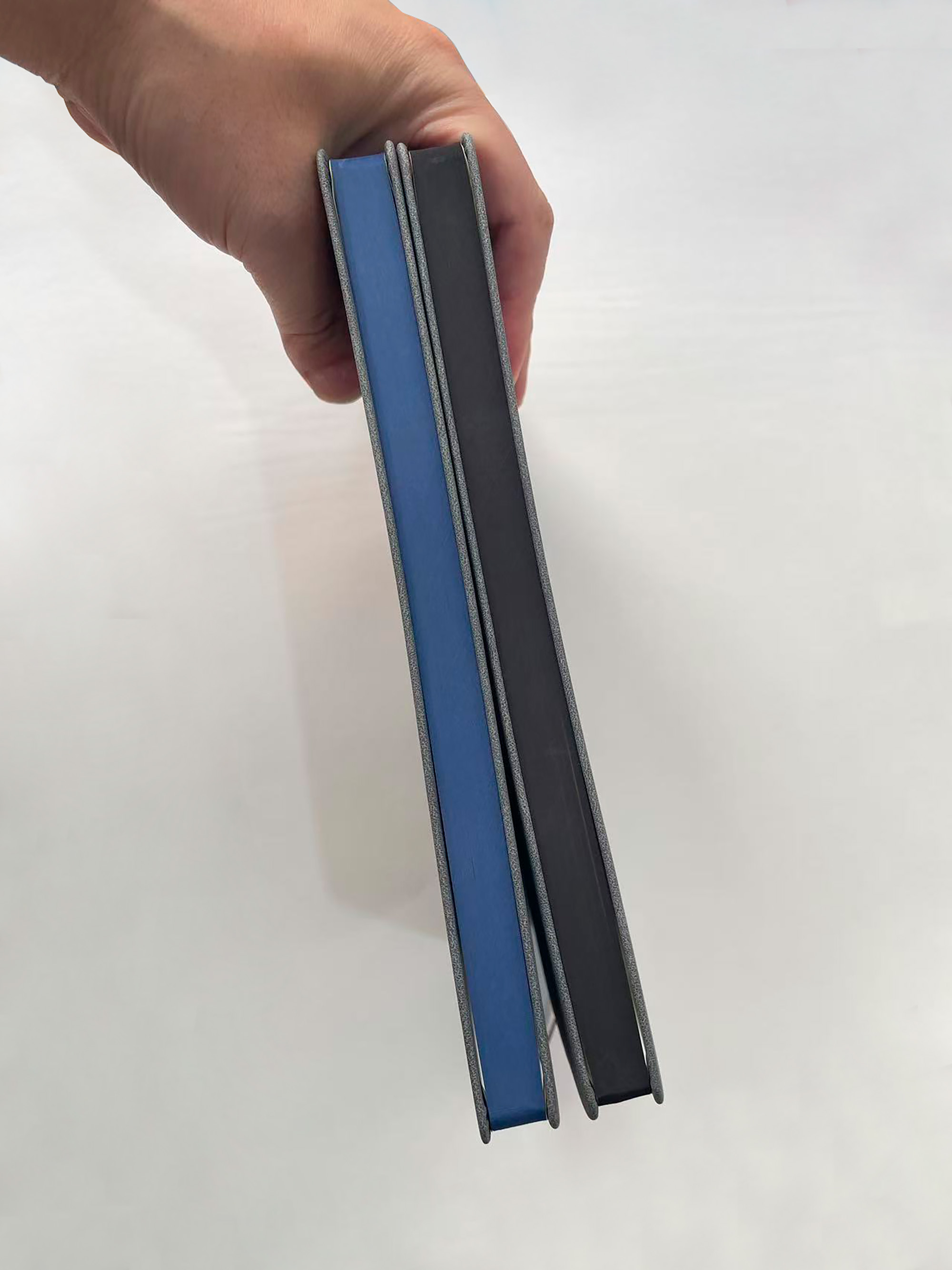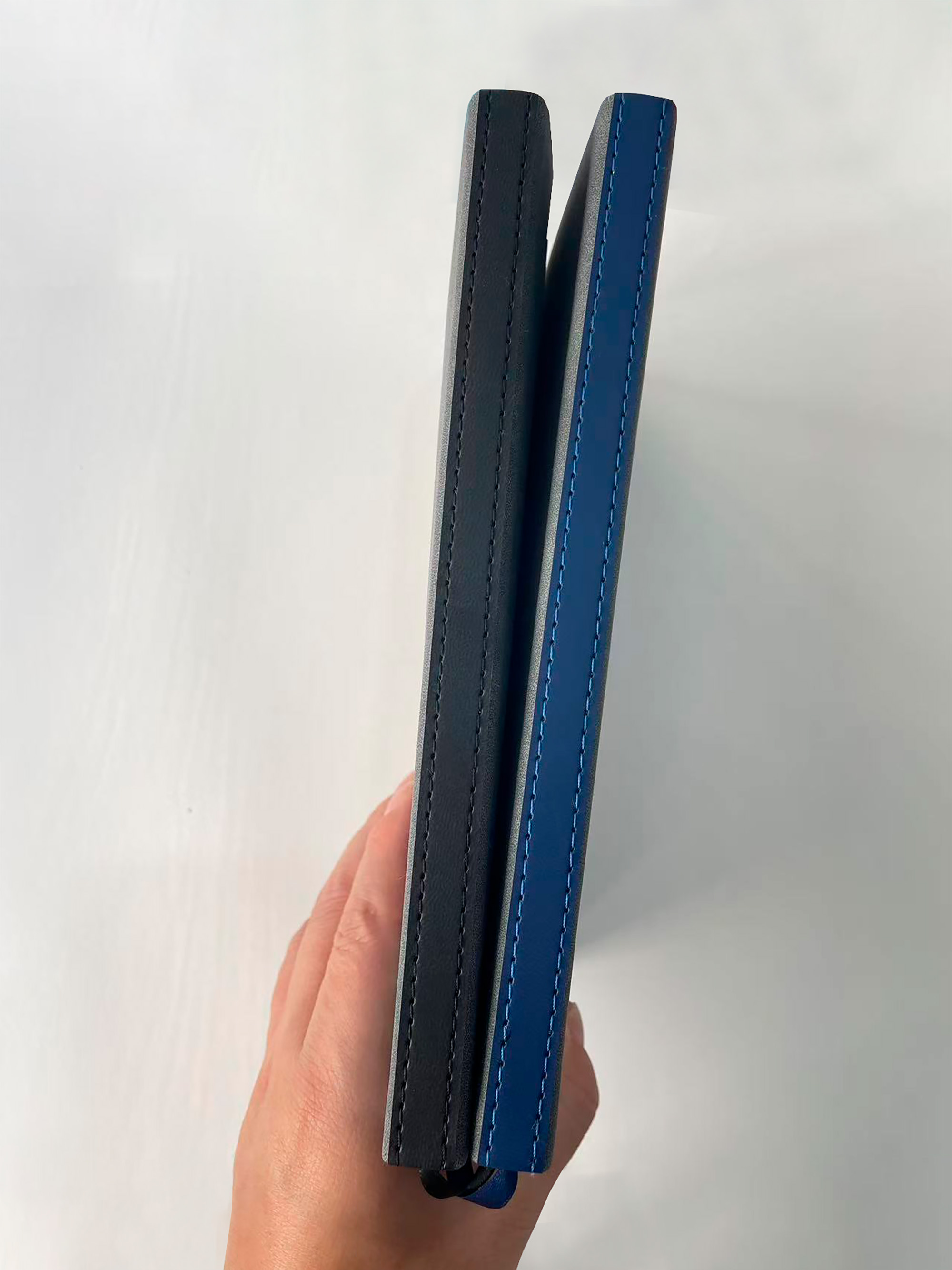 - Основной материал - практичный "велюр" серого цвета, контрастная (цветная) полоса из к/зама в корешке;
