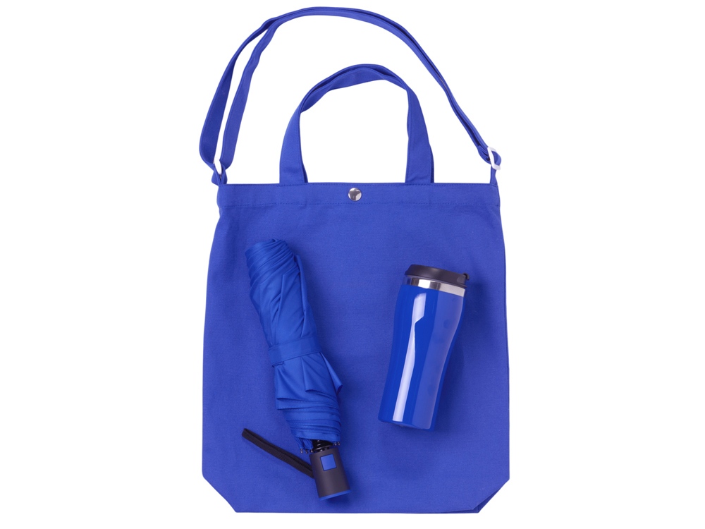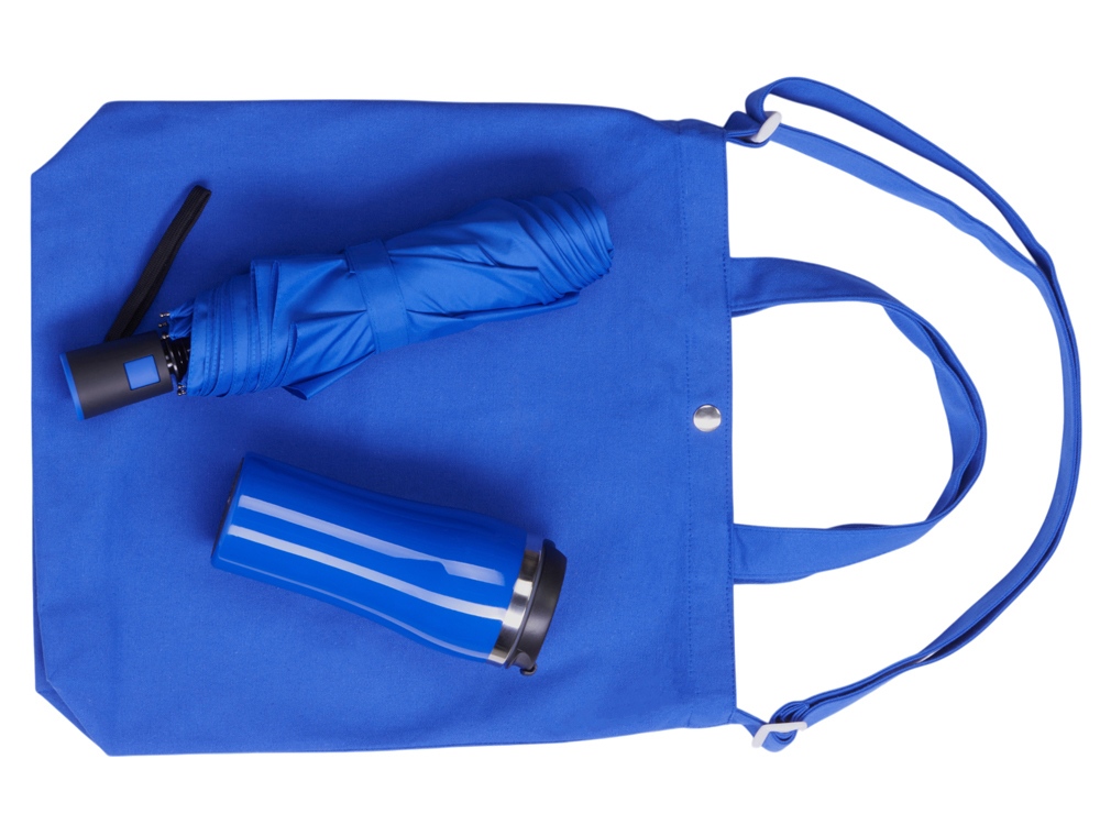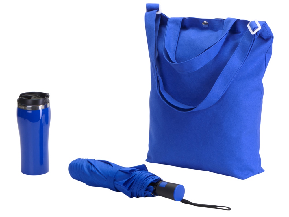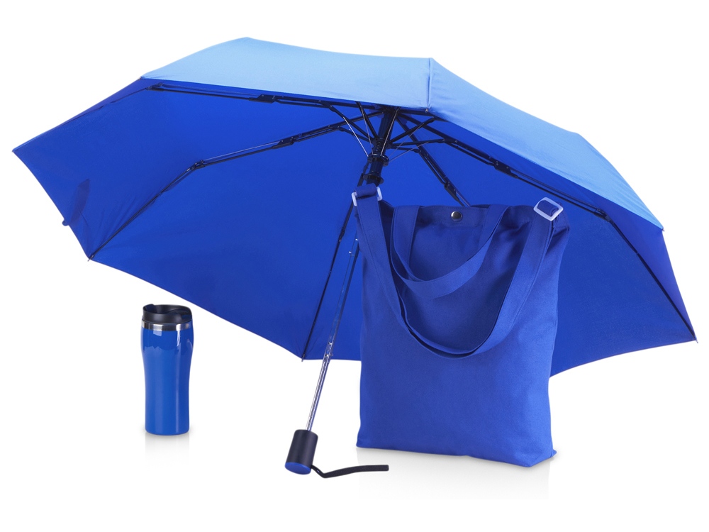 Набор для прогулок и шоппинга в любую погоду. На случай дождя предусмотрен зонт. Если на улице холодно, можно налить в кружку любимый согревающий напиток, а вместительная удобная сумка выдержит вес множества покупок. Сумку можно нести в руке или на плече для вашего удобства. Трафаретная печать (1 цвет (цветные изделия)) на данный товар осуществляется бесплатно.
