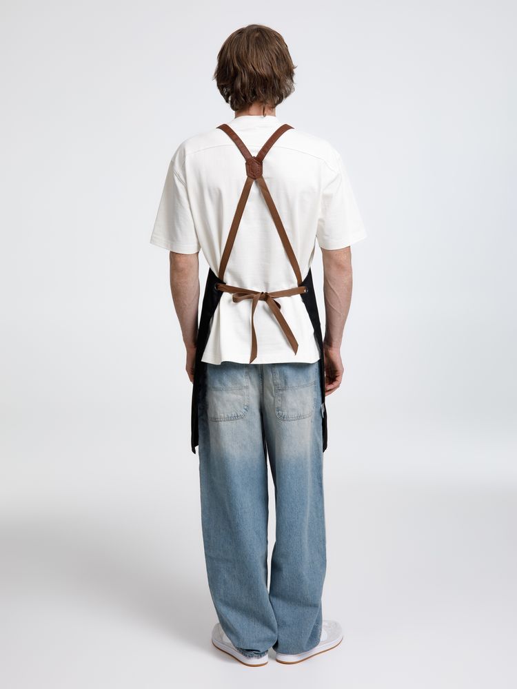 Функциональные карманы на груди и подоле эффектно украшают фартук, изготовленный из качественной дышащей плотной износостойкой ткани. Благодаря динамичным крестообразным лямкам он отлично сидит как на мужской, так и на женской фигуре. Кроме того, съемные лямки упрощают процесс стирки в стиральной машине.