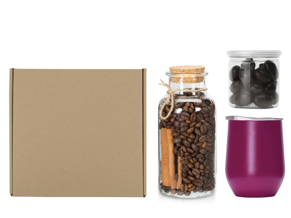 Подарочный набор с термокружкой, кофе и миндалем в шоколаде, винный