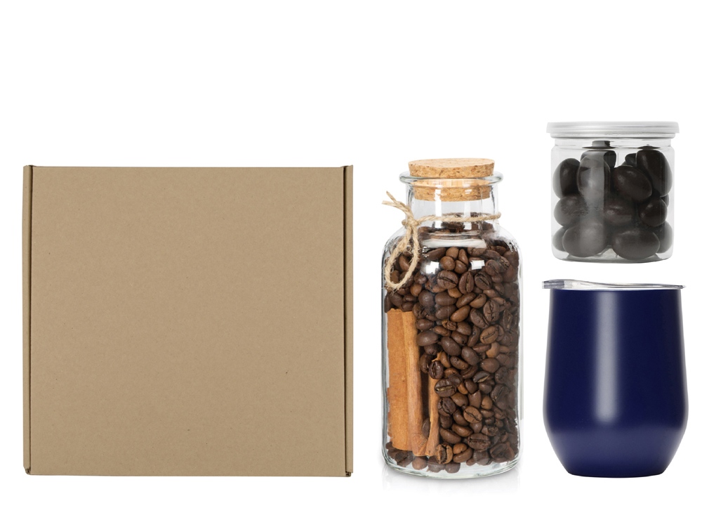 Подарочный набор с термокружкой, кофе и миндалем в шоколаде, синий