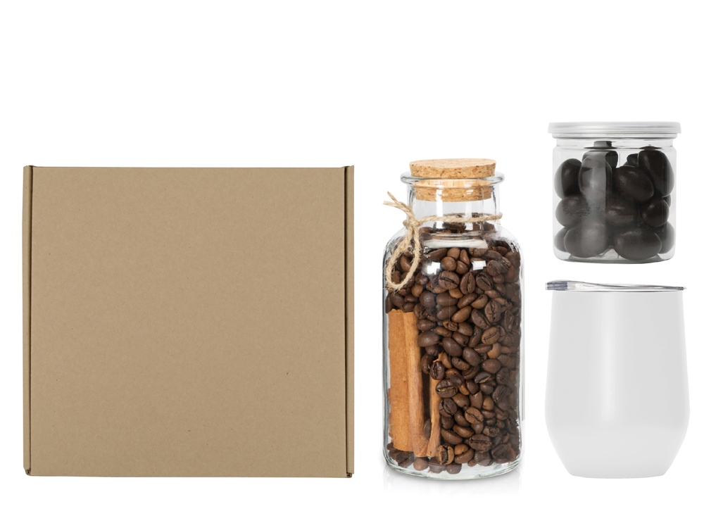 Подарочный набор с термокружкой, кофе и миндалем в шоколаде, белый
