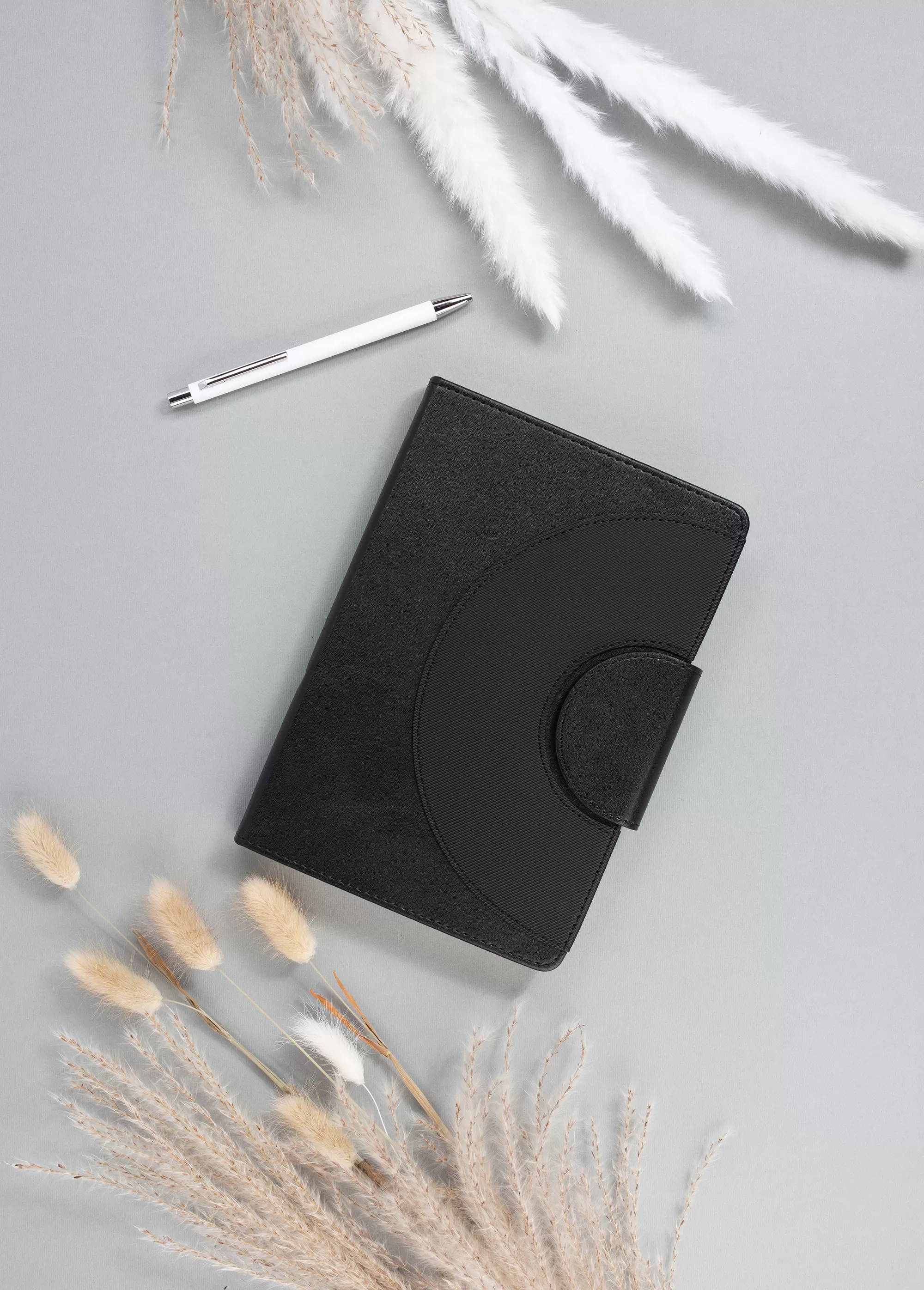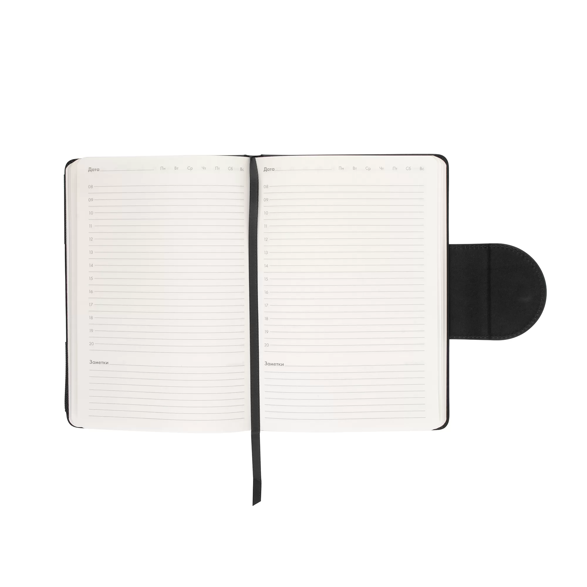 Новинка в коллекции Wownote с оригинальной сшивкой под магнитный хлястик. Основной материал гладкий мелкозернистый с глянцем, имитирует фактуру натуральной кожи. Матовая вставка с диагональным направлением рисунка в тон основного материала. Большой магнитный хлястик, который можно использовать под нанесение.