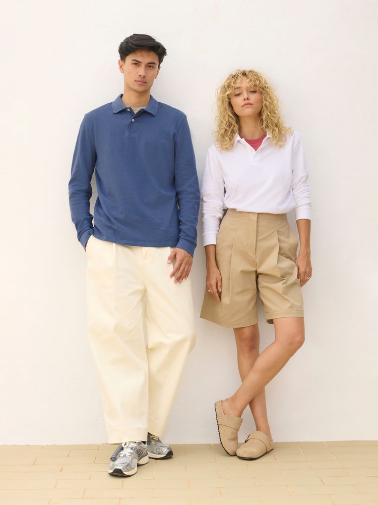 Рубашка поло унисекс прямого силуэта и с длинным рукавом.