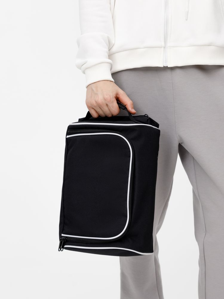 Благодаря боковой ручке Equipex удобно нести отдельно или доставать из большой спортивной сумки. Внешние и внутренние карманы позволяют хранить рядом с парой обуви важные мелочи: средства и аксессуары для ухода, пластыри или запасные носки. В нижней части сумки расположены вентиляционные вставки для проветривания.