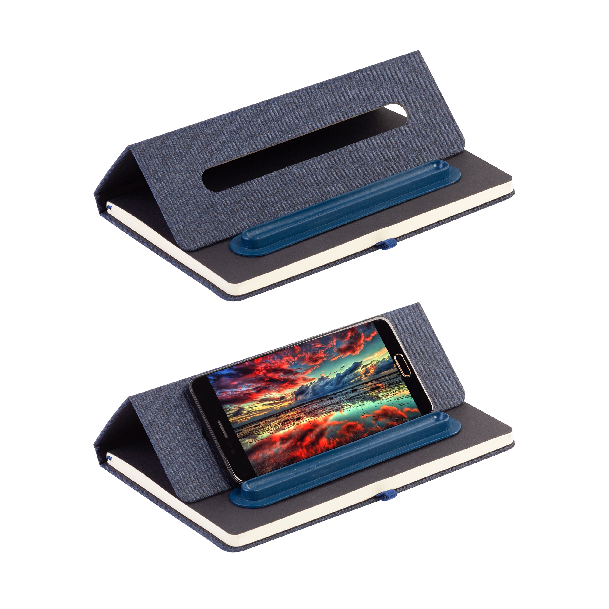 Блокнот Magnet с ручкой Vega на магните, с подставкой под смартфон, темно-синий