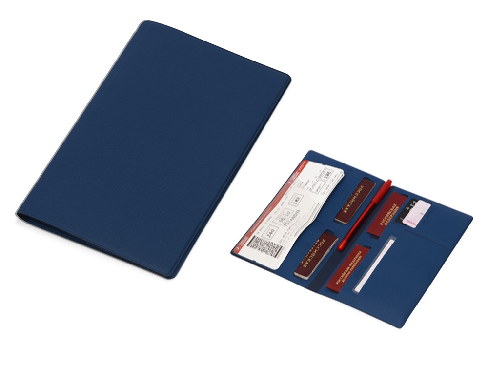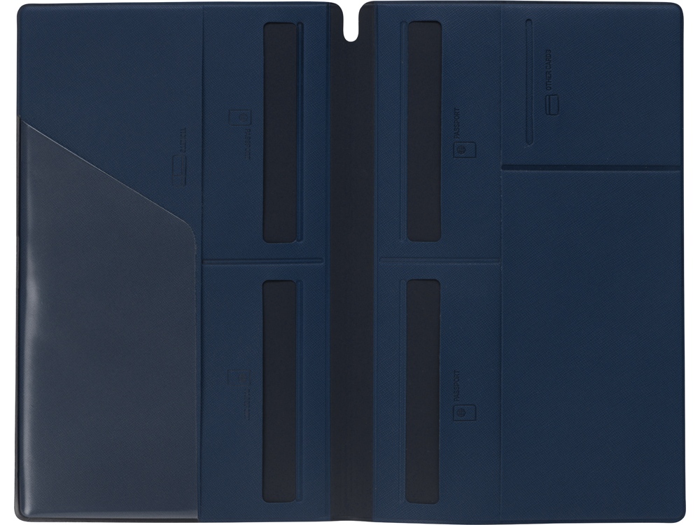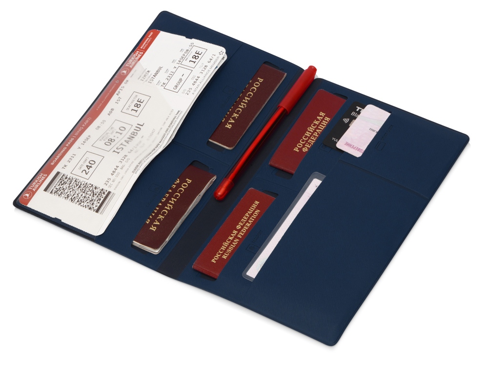 Внутри имеется восемь карманов, которые позволяют вместить документы для семьи из четырех человек. Документы аккуратно разложены и не утратят свою форму. Благодаря своим преимуществам органайзер для путешествий становится не только отменным подарком, но и эффективным рекламным средством. Тиснение (Блинт) на данный товар осуществляется бесплатно.