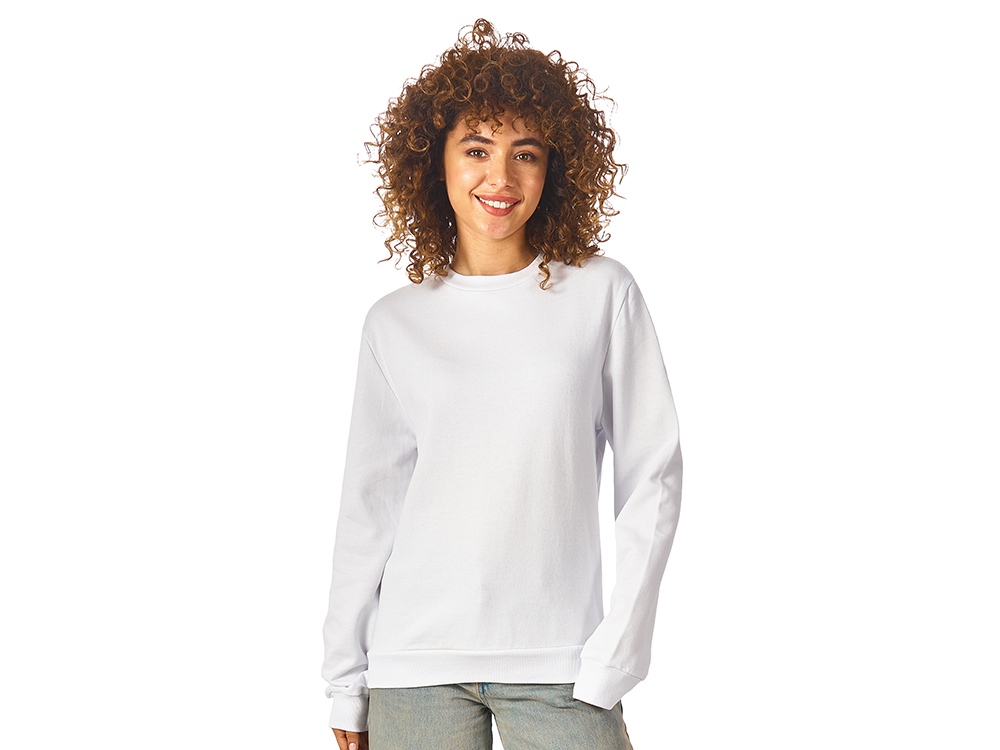 Свитшот из плотного 3х ниточного хлопкового футера. Горловина, манжеты и низ отделан рибом 2х2. Горловина спинки внутри дополнительно укреплена тесьмой с выработкой елочка. Полотно из утяжеленного хлопкового футера внутри с петельками без начеса.