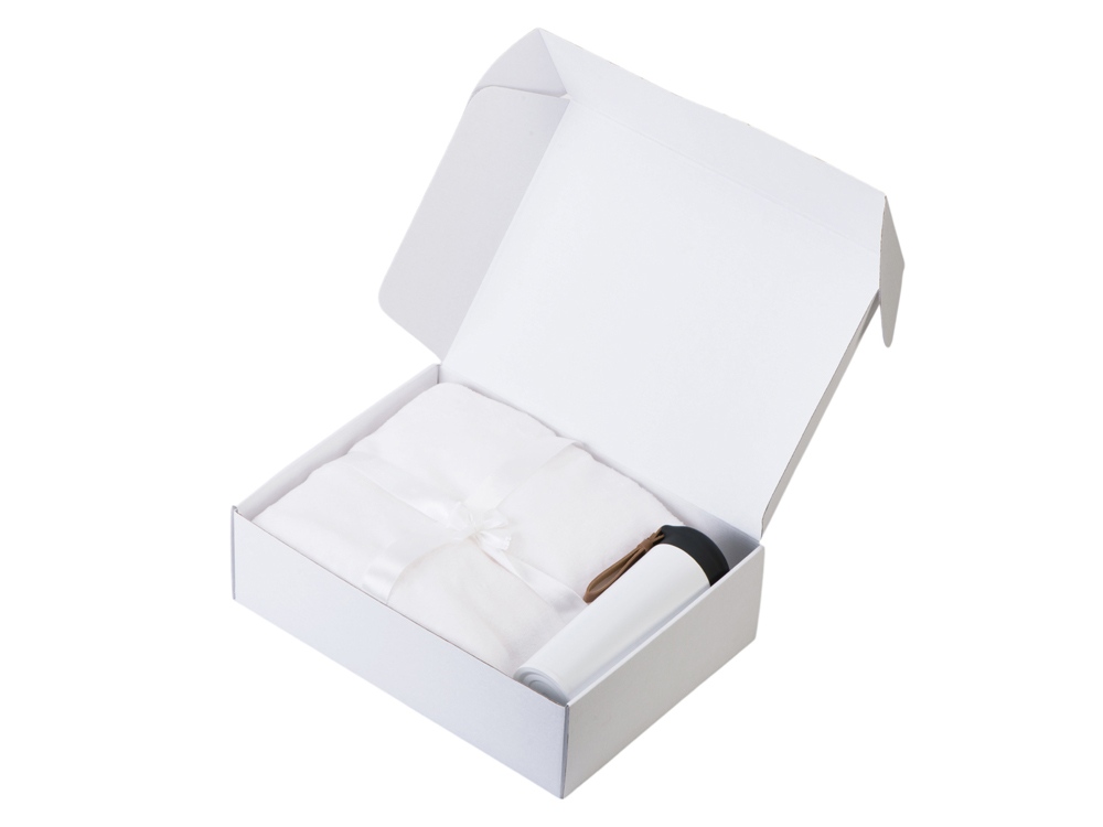| Материал | коробка - картон, плед - флис из 100% полиэстера, термос - нержавеющая сталь, soft-touch |