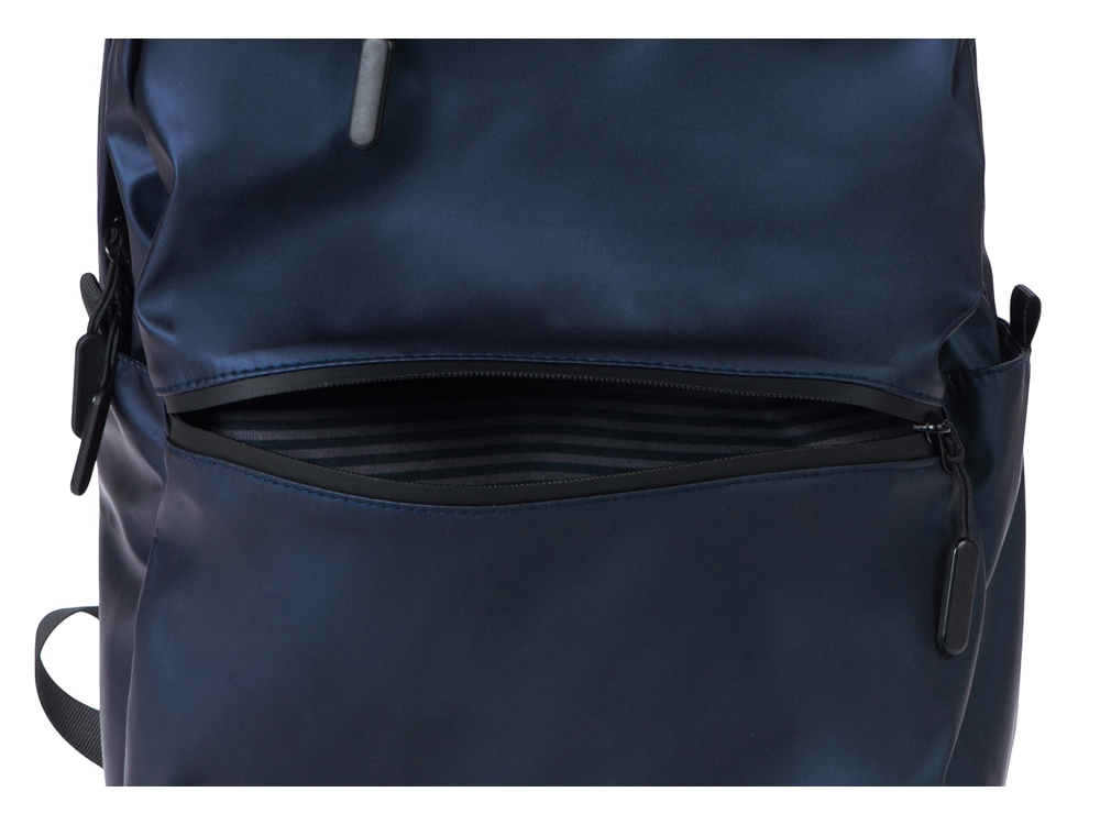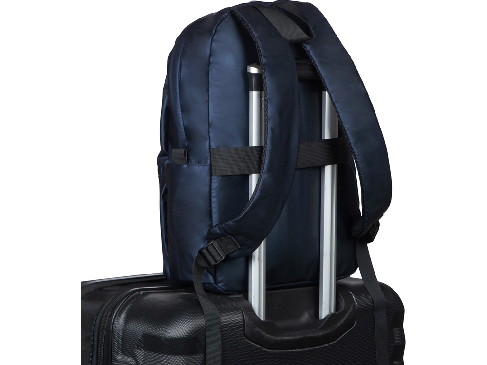 Элегантный легкий городской рюкзак из мягкого приятного на ощупь материала можно использовать для передвижений по городу, а так же в поездках, для чего на спинке предусмотрен ремень для крепления на ручку чемодана. Для удобства и компактного хранения содержимого снаружи расположены 2 передних кармана на молниях и 2 боковых кармана. Внутри уплотненный карман для ноутбука. Стильная подкладка в полоску в тон цвета внешнего материала делает рюкзак модным аксессуаром. Благодаря водостойкому материалу и молниям содержимое рюкзака не намокнет под дождем. Лямки регулируются по длине. Термотрансфер (1 цвет (цветные изделия)) на данный товар осуществляется бесплатно.