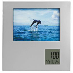 Фоторамка с часами, серебристый