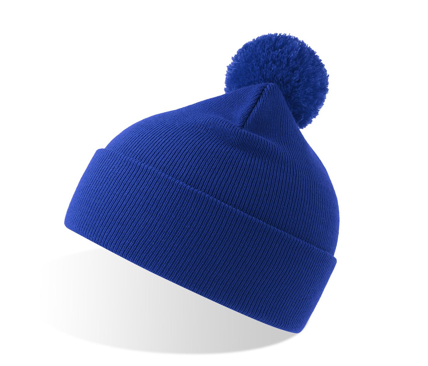 Шапка вязаная двойная Wind-S c помпоном, ярко-синий
