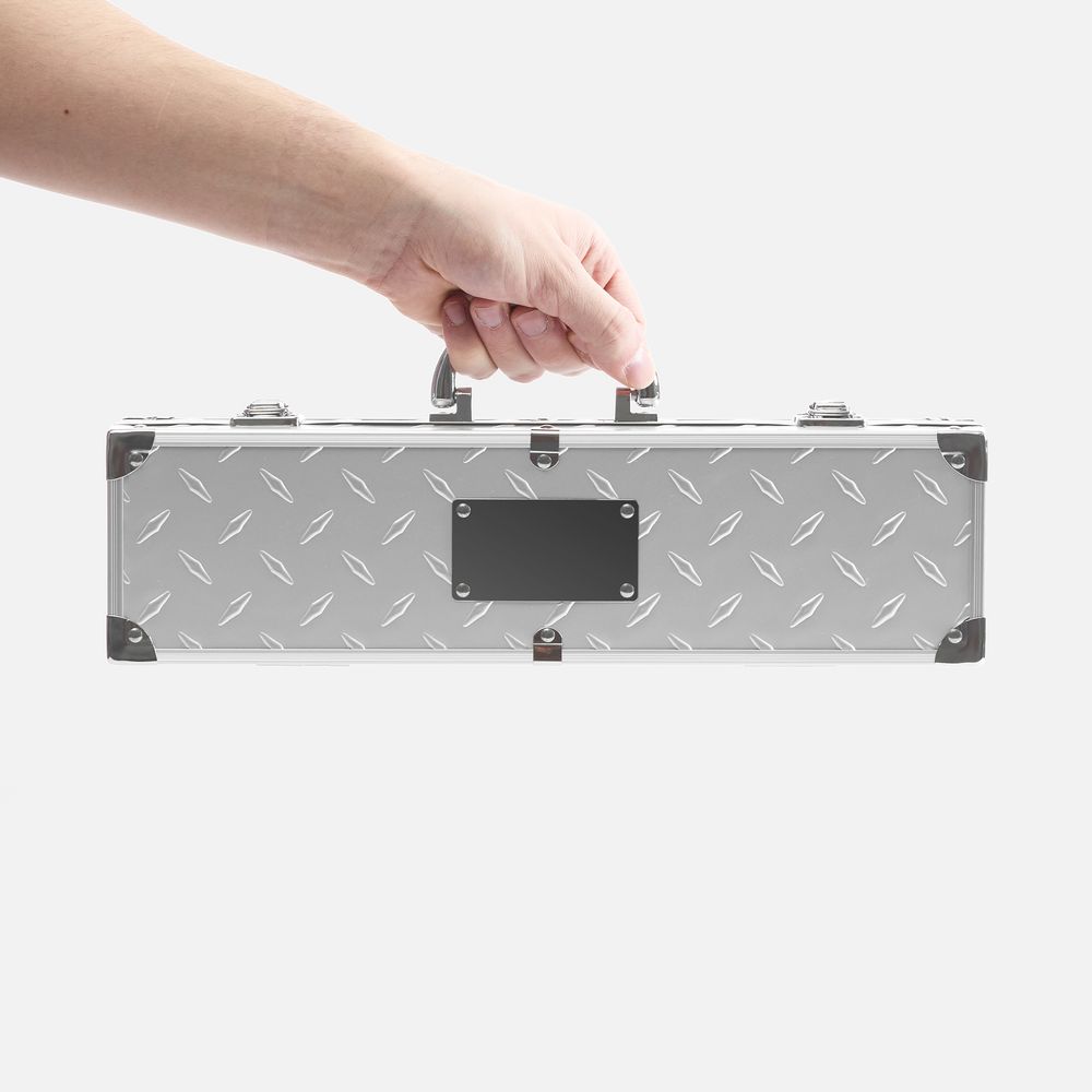 | Размеры | вилка: 35,5х3,5х2 см; лопатка: 35,5х7,5х2 см; щипцы: 35х4,2х6 см; кейс: 37х10х8 см |