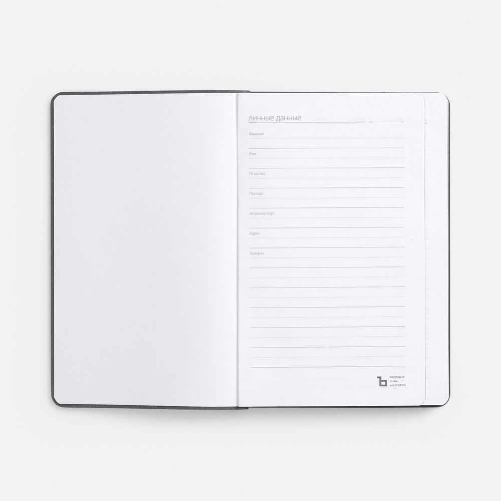 Ежедневник с гибкой обложкой выполнен из материала Soft Touch, белый BB и серого Latte (внутренняя часть обложки).