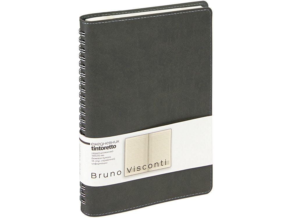 Недатированный ежедневник формата А5 Tintoretto ТМ Bruno Visconti - практичное решение для тех, кто любит ежедневники на пружине. Полускрытый гребень позволяет держать ежедневник открытым на столе и комфортно вести записи. 272 страницы блока произведены из превосходной бежевой бумаги плотностью 70 г/кв.м, а неброская линовка каждой страницы позволяет не отвлекаться на лишние детали. Гибкую обложку из искусственной кожи украшает отстрочка декоративной нитью по краю.