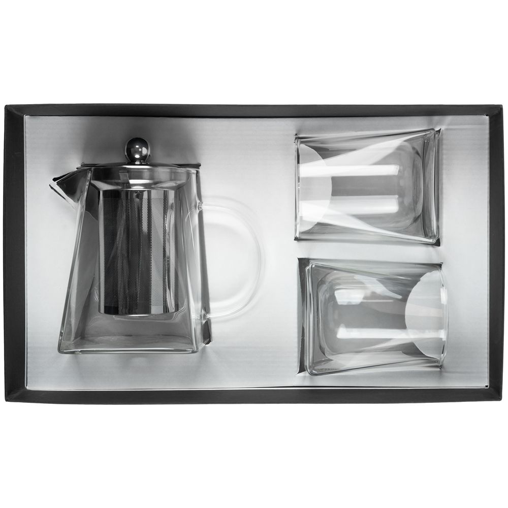 | Материал | чайник, стаканы - боросиликатное стекло; крышка и сито - нержавеющая сталь; коробка - переплетный картон |
