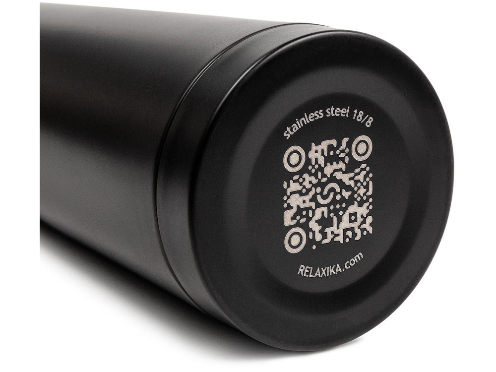 Классический термос Relaxika черного цвета с высокими показателями удержания температуры напитка для походов, путешествий, спорта и ежедневного использования. Прочные двойные стенки из высококачественной нержавеющей стали 18/8 с вакуумной изоляцией гарантируют, что ваш напиток останется холодным в течение 28 часов и горячим до 22 часов. Этот материал не только прочен, но и гигиеничен, не выделяет никаких вредных для здоровья веществ. Ваши напитки сохраняет естественный вкус и не приобретут посторонний запах.