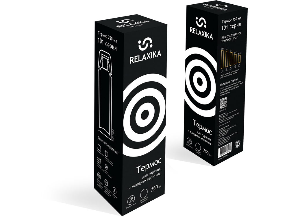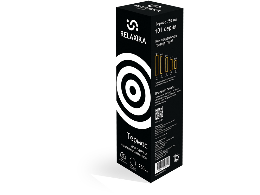 Классический термос Relaxika с высокими показателями удержания температуры напитка для походов, путешествий, спорта и ежедневного использования. Прочные двойные стенки из высококачественной нержавеющей стали 18/8 с вакуумной изоляцией гарантируют, что ваш напиток останется холодным в течение 36 часов и горячим до 30 часов. Этот материал не только прочен, но и гигиеничен, не выделяет никаких вредных для здоровья веществ. Ваши напитки сохраняет естественный вкус и не приобретут посторонний запах. Напиток остается холодным до 36 часов и горячим до 30 часов.