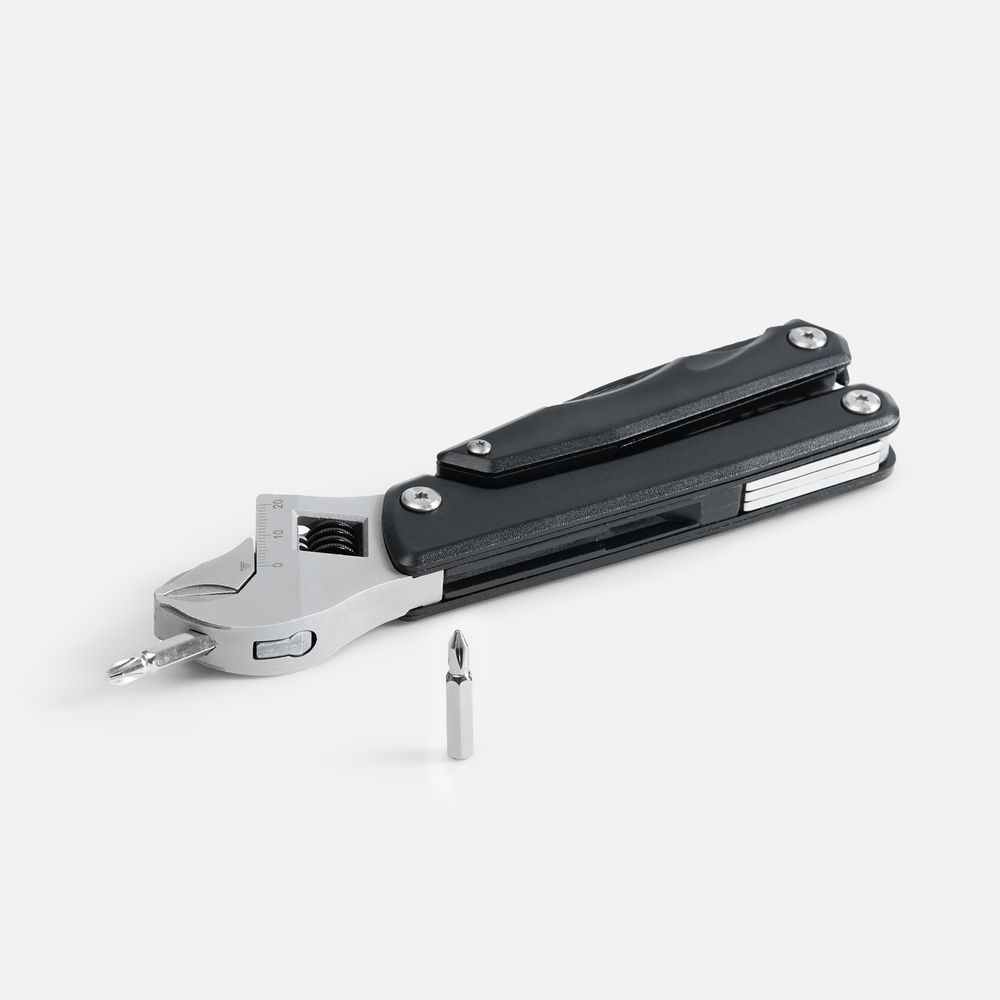 В комплекте мультитул, чехол и 2 дополнительные биты.