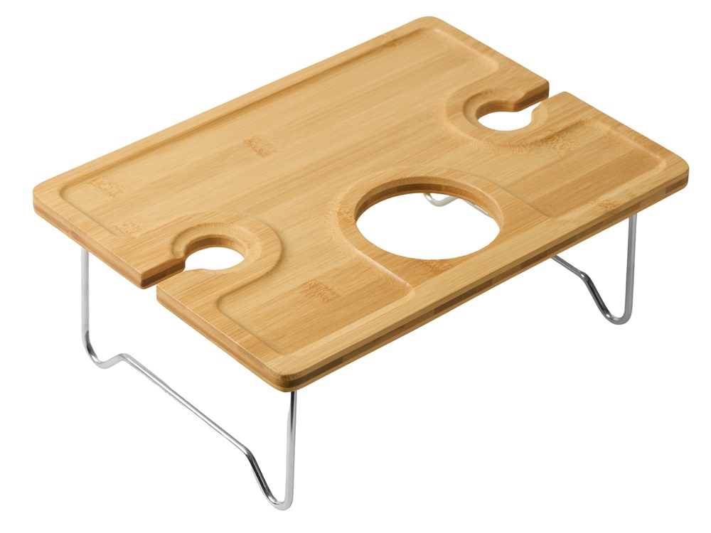 Представьте, как вы наслаждаетесь закатом с бокалом любимого вина, не беспокоясь о том, что его можно опрокинуть. Этот элегантный столик оснащен двумя специальными углублениями для надежной фиксации бокалов, а центральное отверстие идеально подходит для устойчивой установки бутылки.