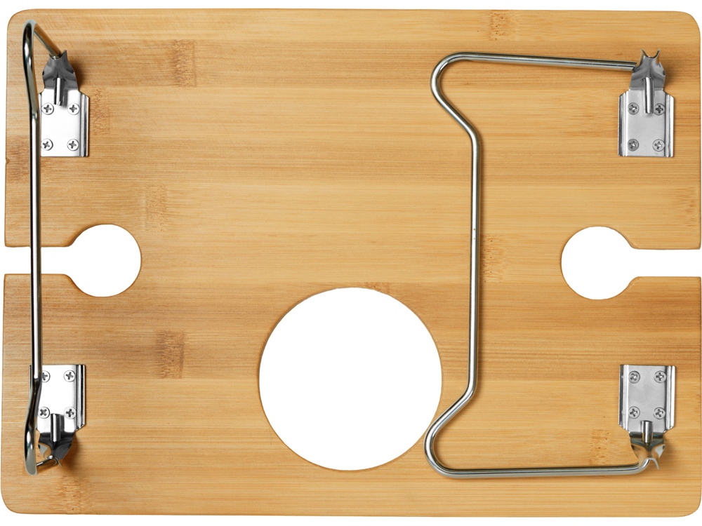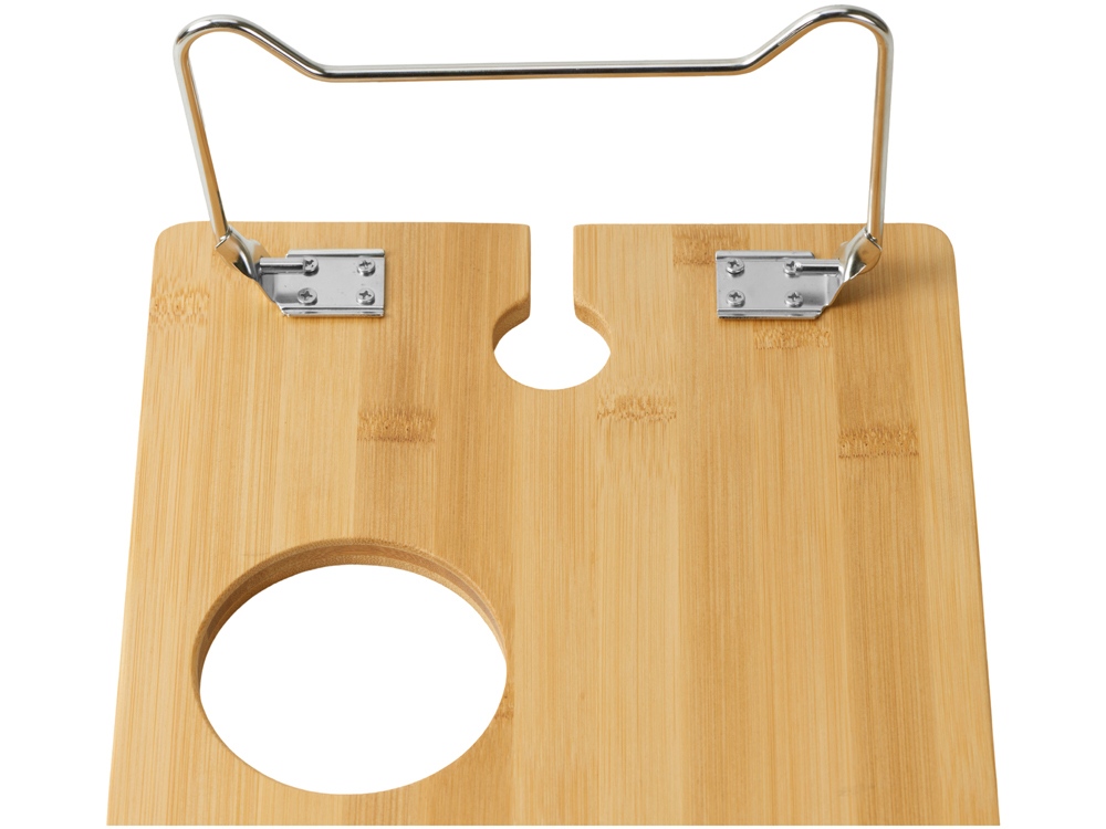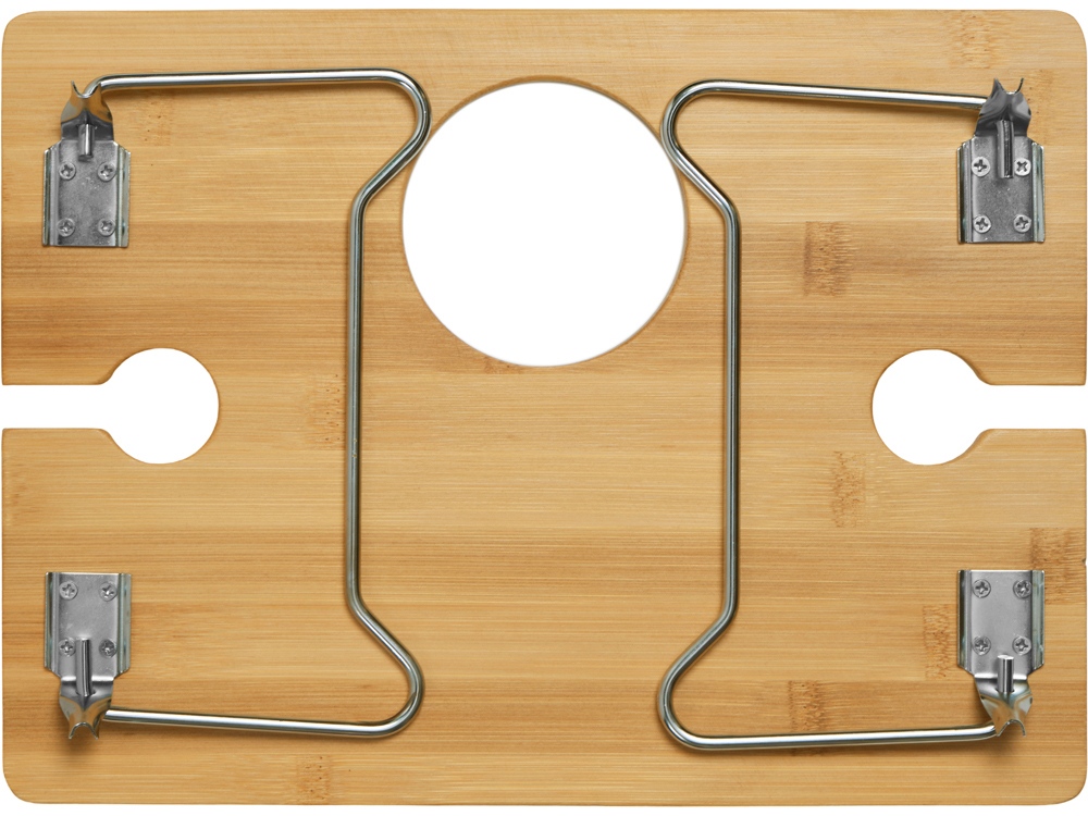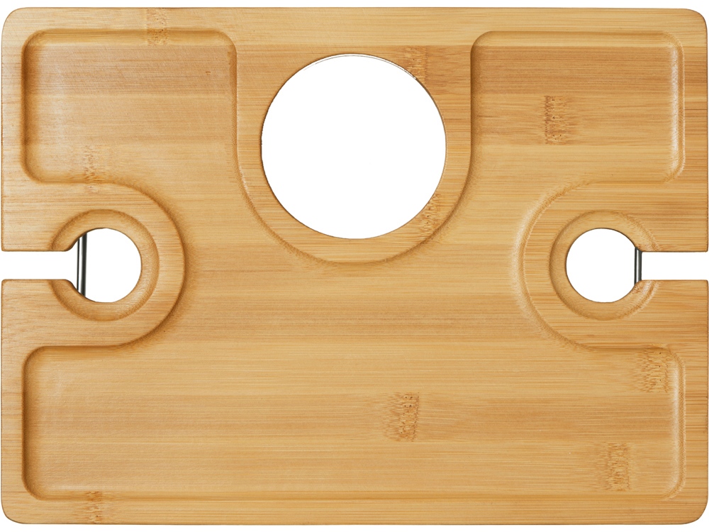 - Надежная фиксация напитков: Два углубления для бокалов и центральное отверстие для бутылки – забудьте о пролитых напитках!