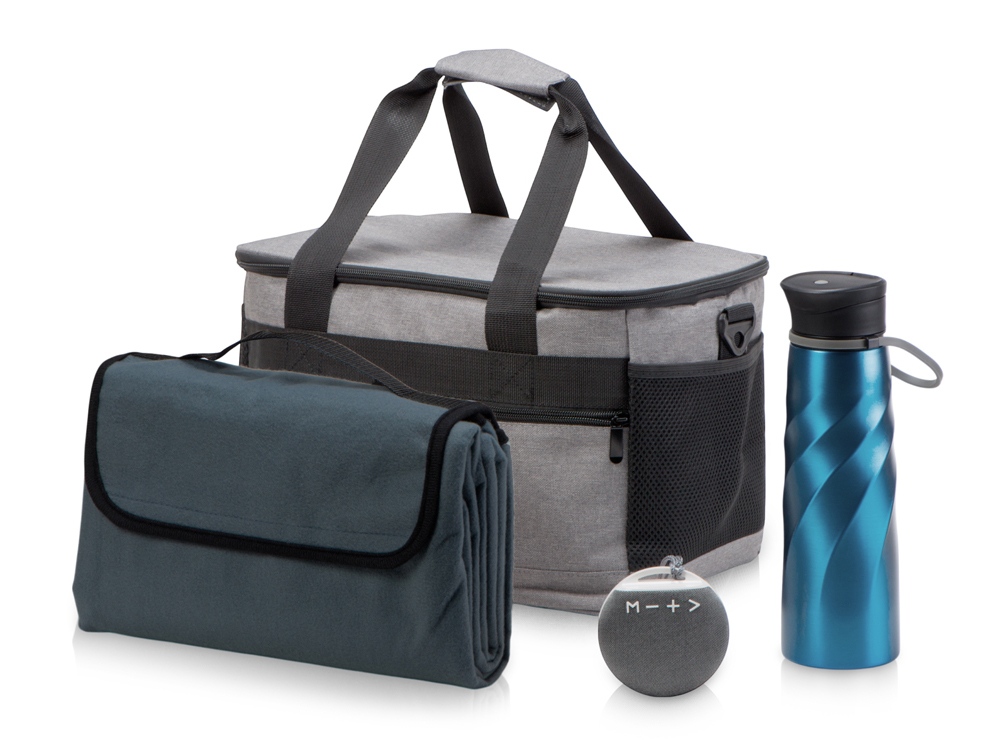 Подарочный набор с пледом и колонкой в сумке - холодильнике Musical trek, синий