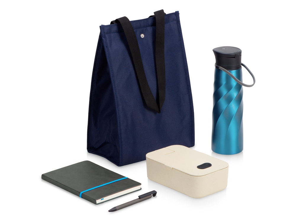 Подарочный набор с блокнотом, ручкой, ланчбоксом и бутылкой для воды Breaktime, синий