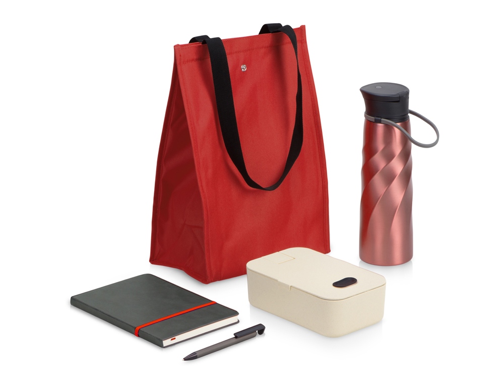 Подарочный набор с блокнотом, ручкой, ланчбоксом и бутылкой для воды Breaktime,красный