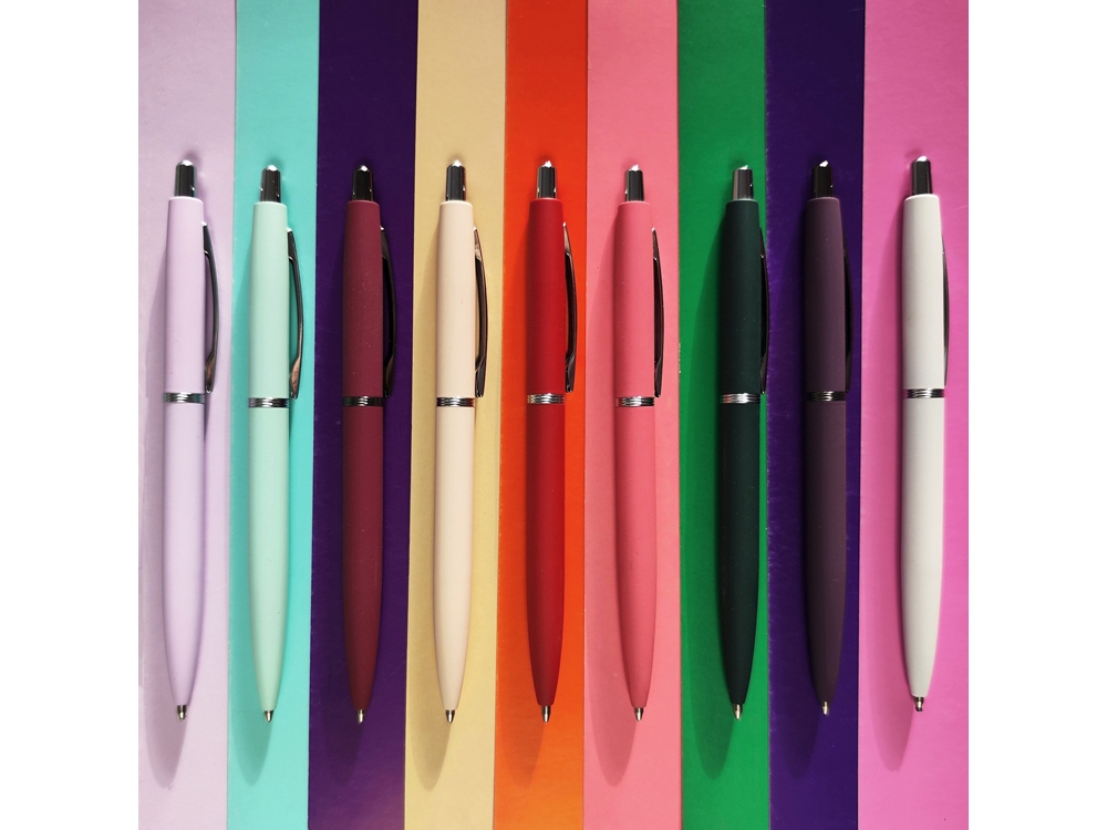 В ручке нет ничего лишнего, но она привлекает к себе внимание: изящна благодаря плавным линиям, эргономичному корпусу и приятна на ощупь, благодаря покрытию soft-touch. Контраст добавляют кольцо и клип из серебристого металла. Отличный бизнес-сувенир!