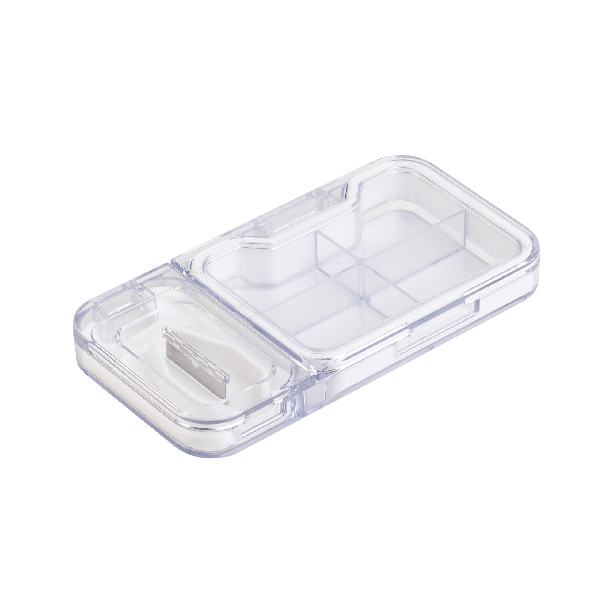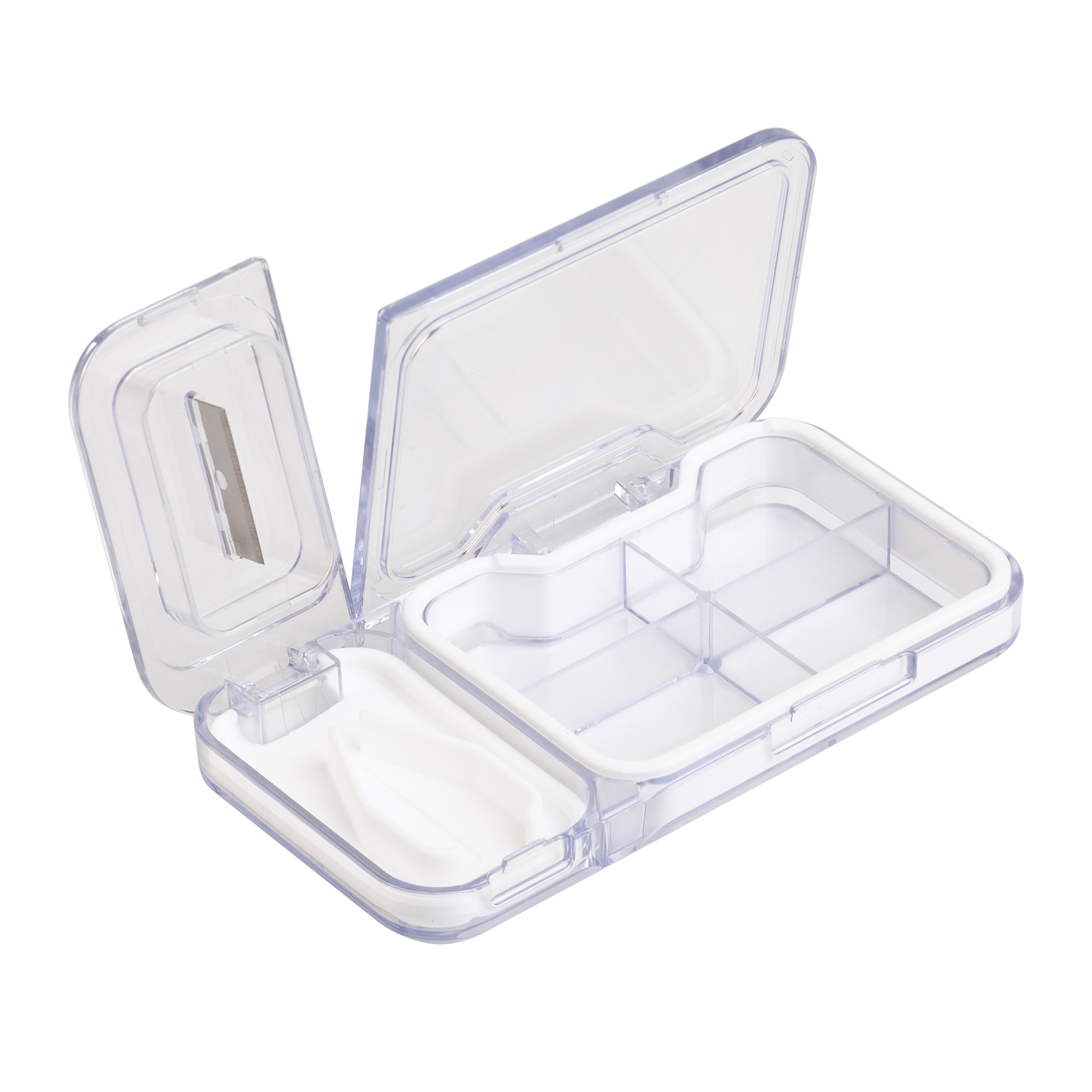 - Легко делить таблетки. Встроенный нож-делитель позволяет аккуратно и безопасно разделить таблетки на нужные дозы - половина или четверть.