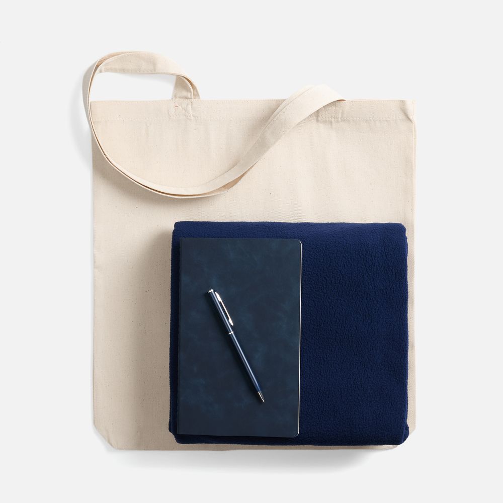 Набор с основной канцелярией и пледом — классика жанра в уютном исполнении. С компактным блокнотом под рукой будет удобно делать заметки в любое время, а легкий флисовый плед позволит выразить самые теплые пожелания.