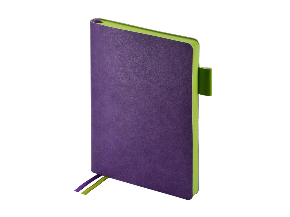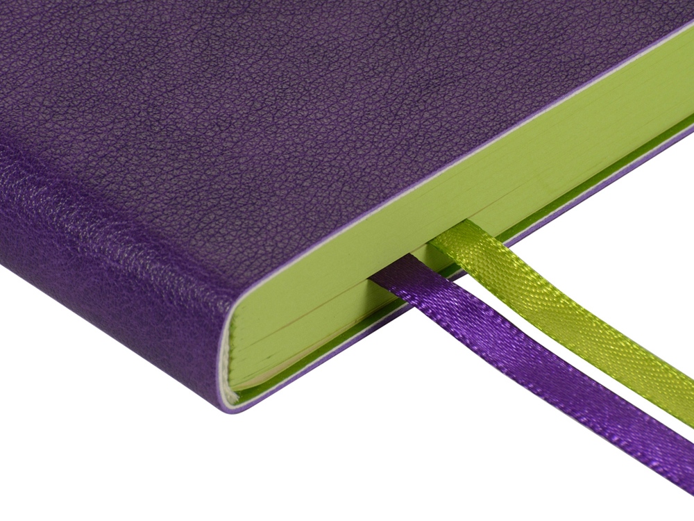 Ежедневник А5 датированный Boston 2026, фиолетовый с салатовым обрезом