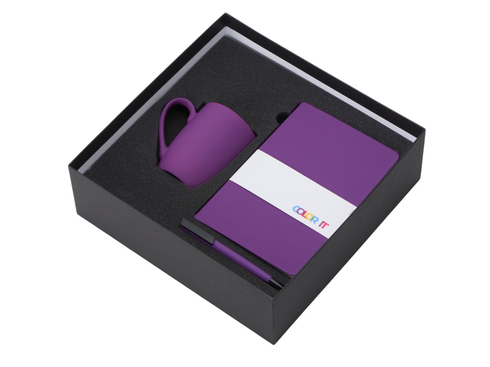 Подарочный набор с блокнотом С1, пластиковой ручкой и кружкой, фиолетовый