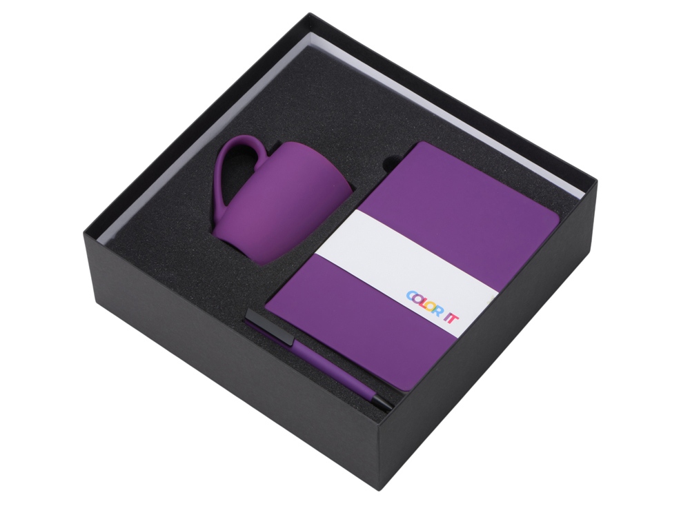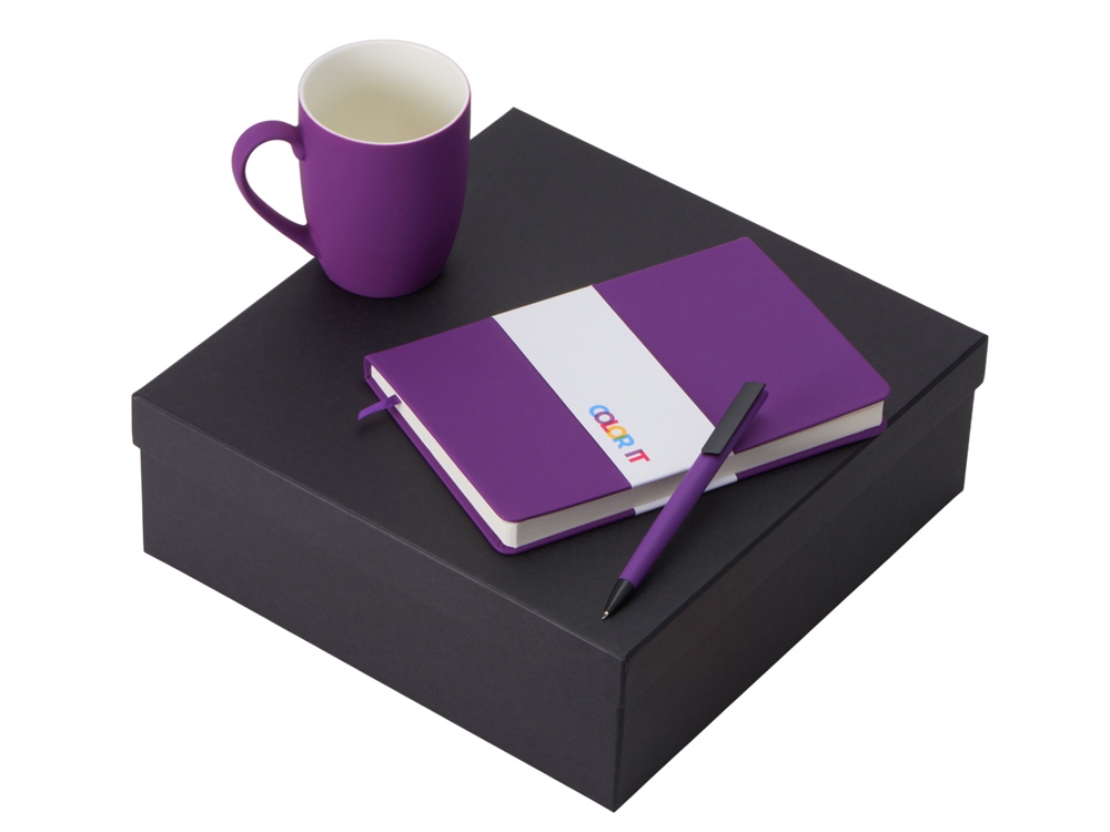 Подарочный набор с блокнотом С2, пластиковой ручкой и кружкой, фиолетовый