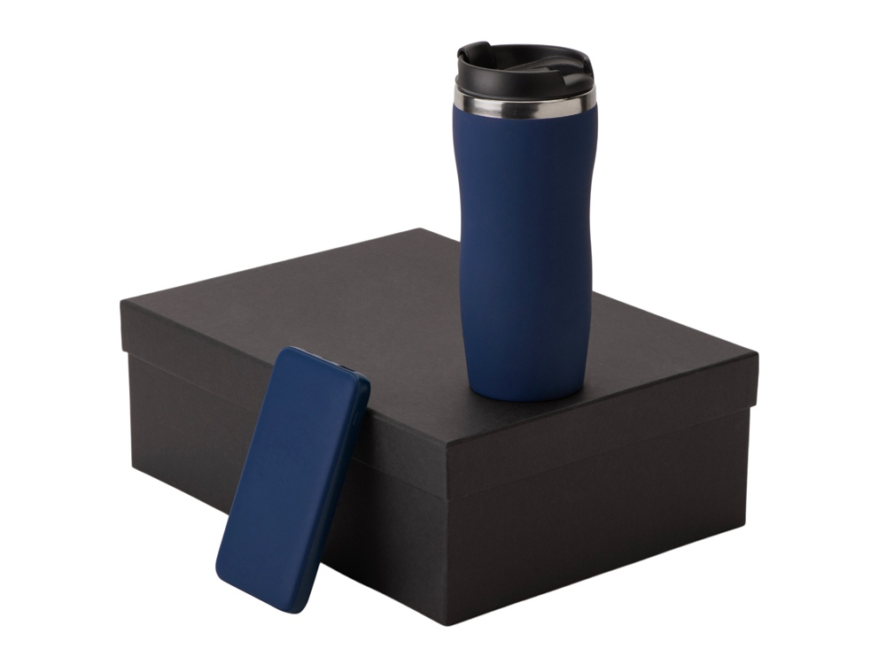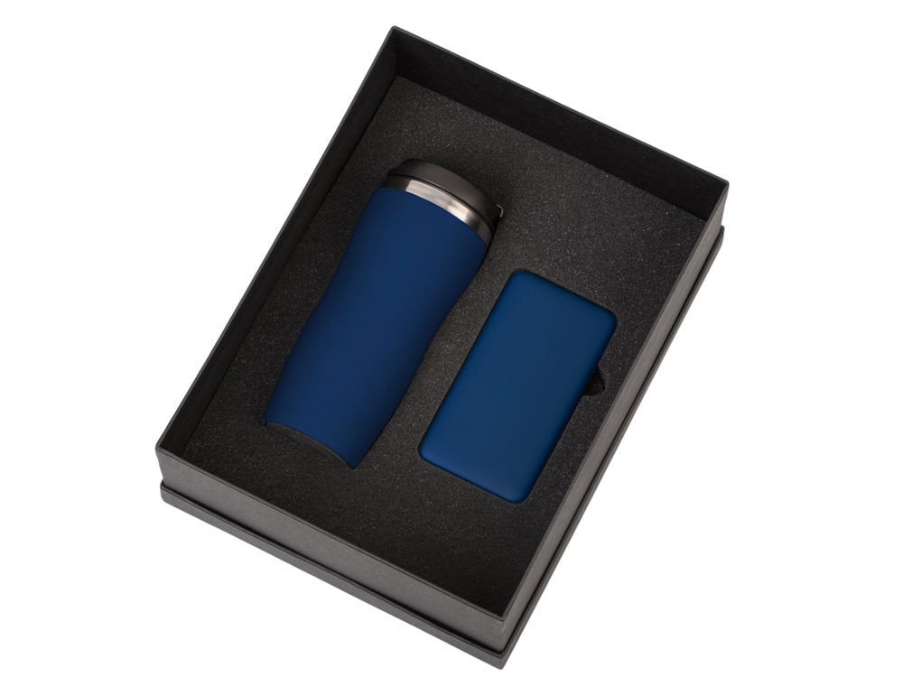 Подарочный набор c термокружкой С1 и повербанком С2, темно-синий