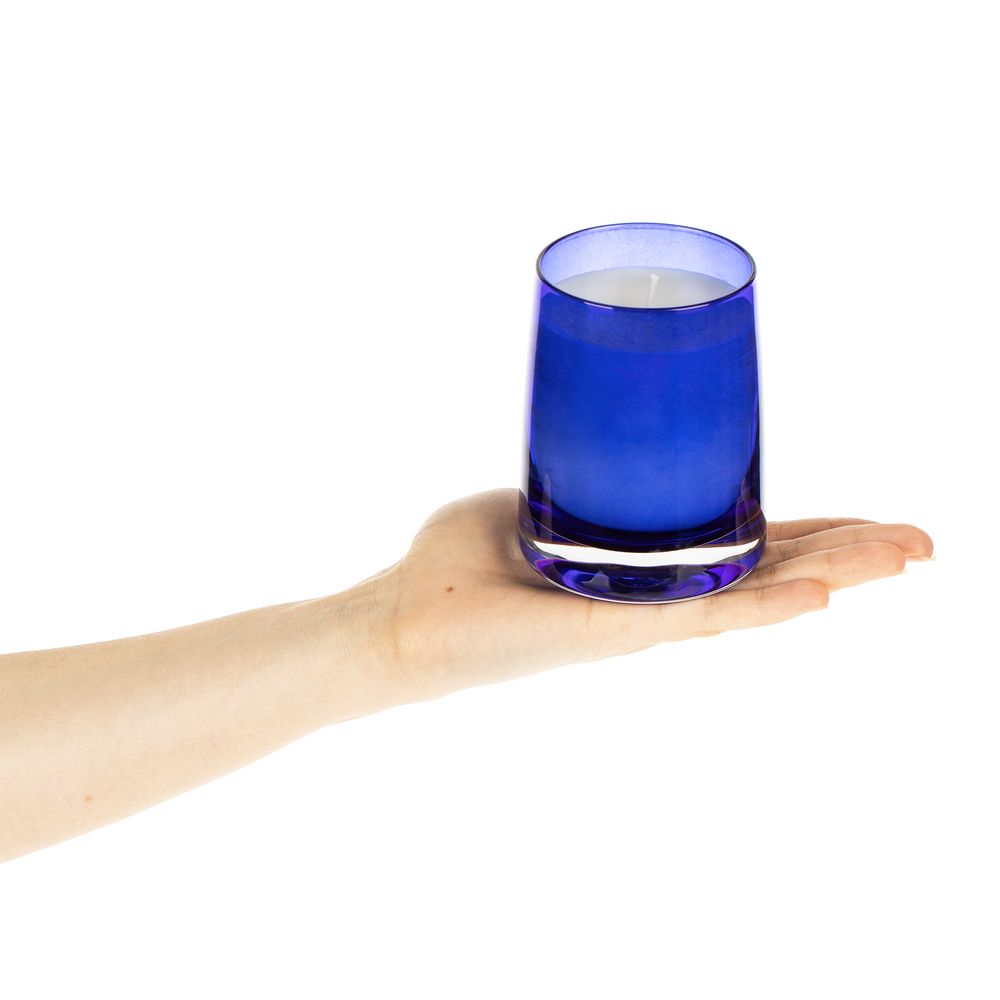 Ароматическая свеча Fragnola в изящном подсвечнике из цветного стекла идеально подходит для создания уютной атмосферы в доме и станет отличным дополнением к любому интерьеру.