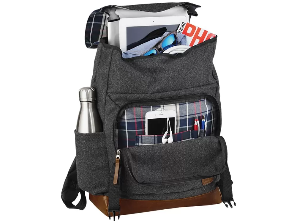 Рюкзак Campster 15. Часть серии Campster от Field & Co.®. Вдохновение было заимствовано у образа ретро скаута и дополнено современными нуждами. Стильный рюкзак выполнен из полиэстера и шерсти с виниловыми акцентами. В рюкзак можно поместить ноутбук до 15. Внутренняя организационная панель и карман для быстрого доступа к вещам. 60% полиэстер, 40% шерсть.