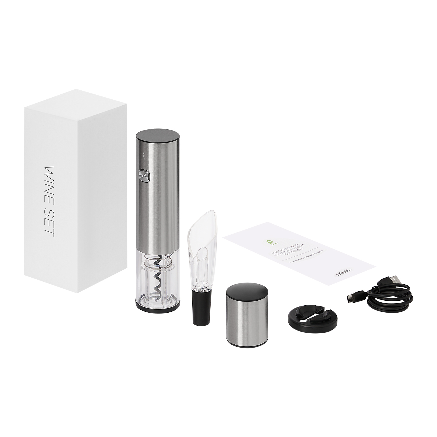 Набор для вина с электрическим штопором Винтаро (Vintaro), серебряный